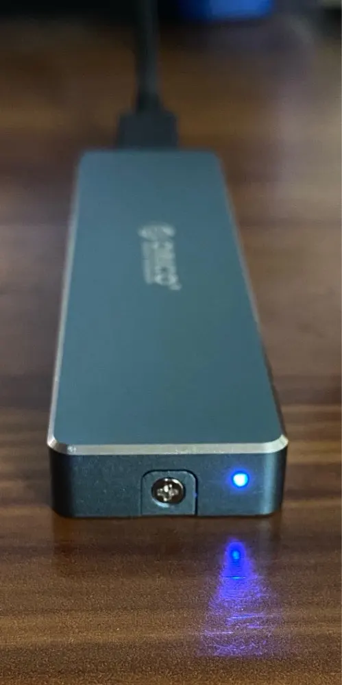 Отличная коробка! С диском Samsung EVO 960 при подключении к компу работает (type-C 3.1), с телефоном Samsung S8 роботает (type-C 3.0), а вот с Xiaomi Mi Max2 не хватает питания аппарата (type-C 2.0) и диск не обнаруживается, только через хаб с внешним питанием. В коробке, с противоположной стороны от разъёма есть ненавязчивая синяя индикация активности.