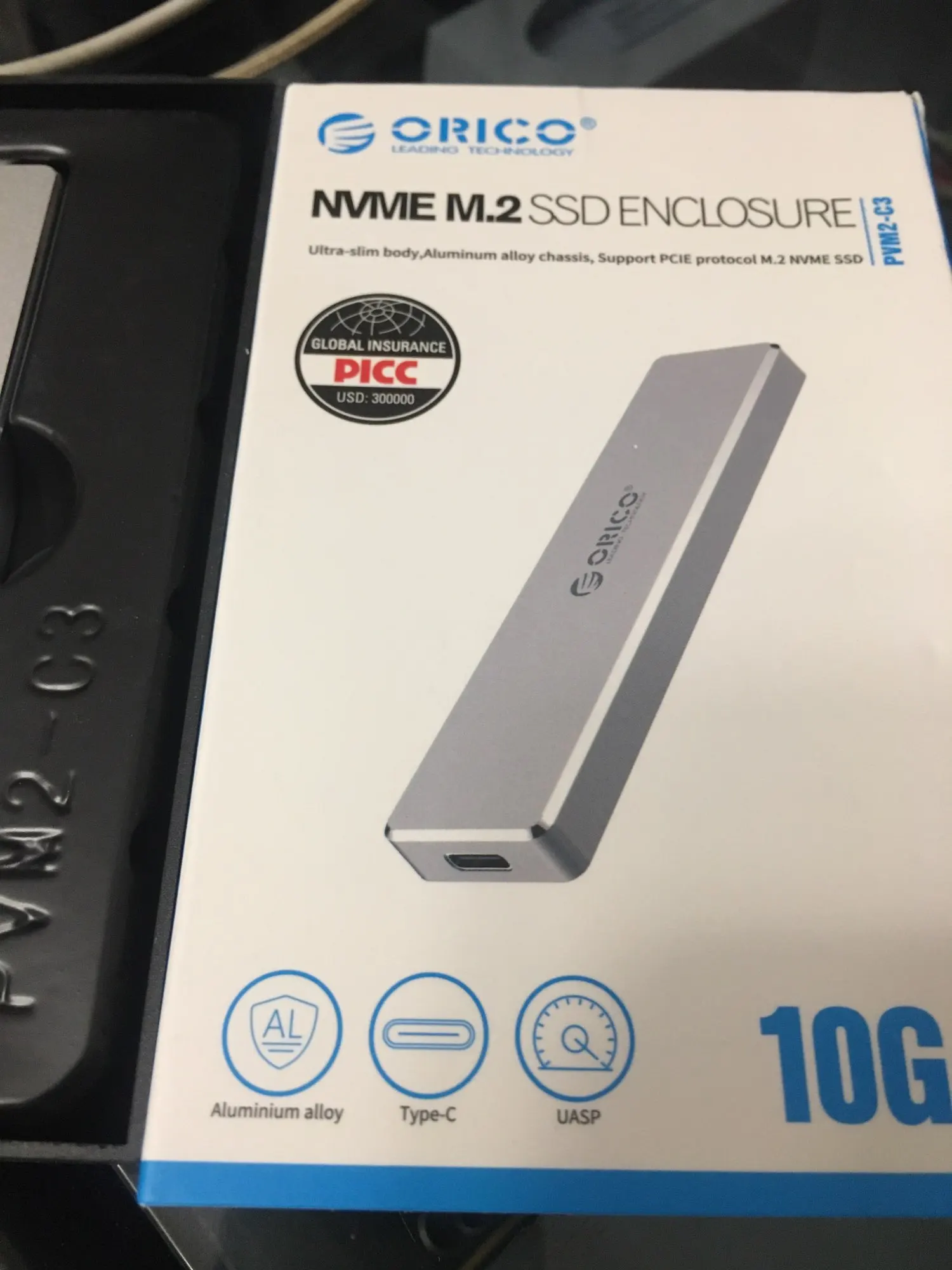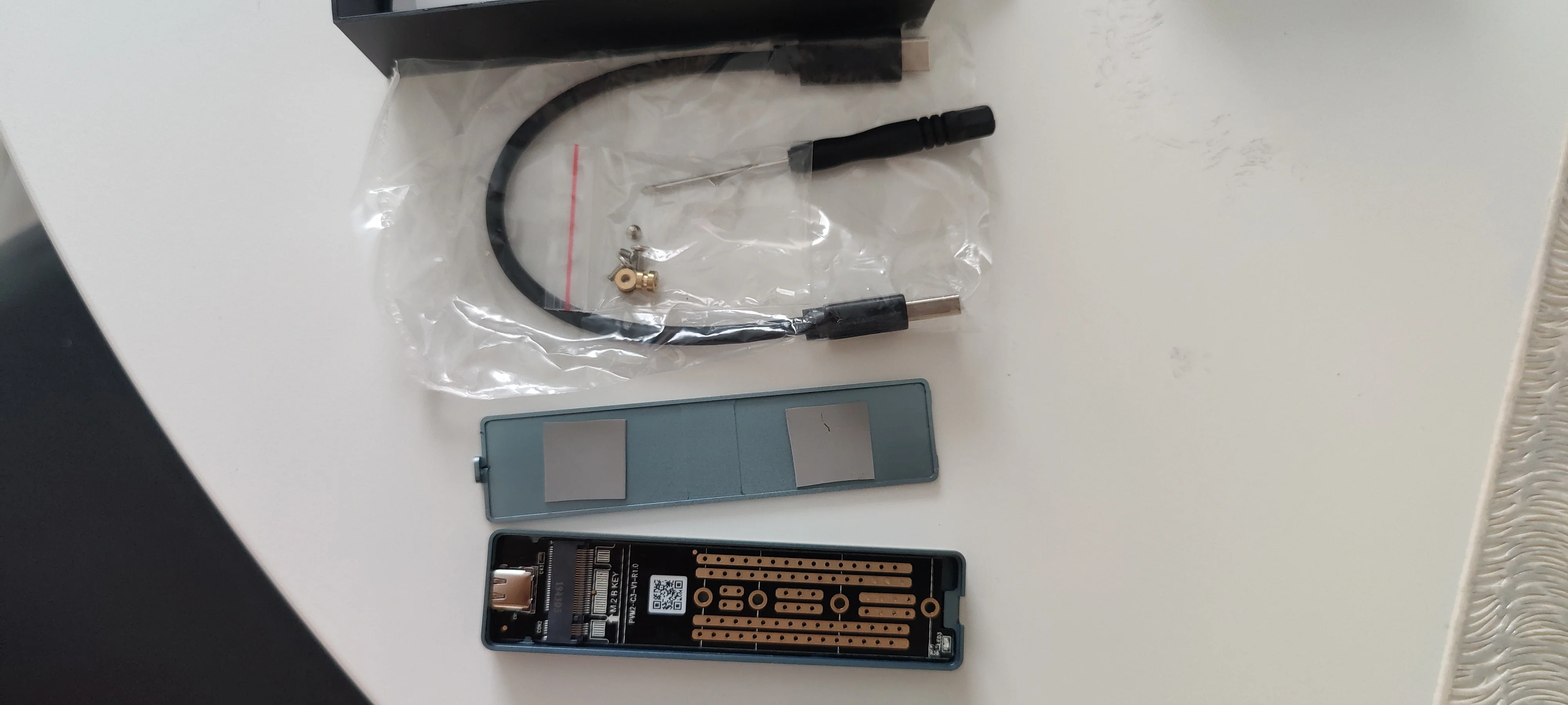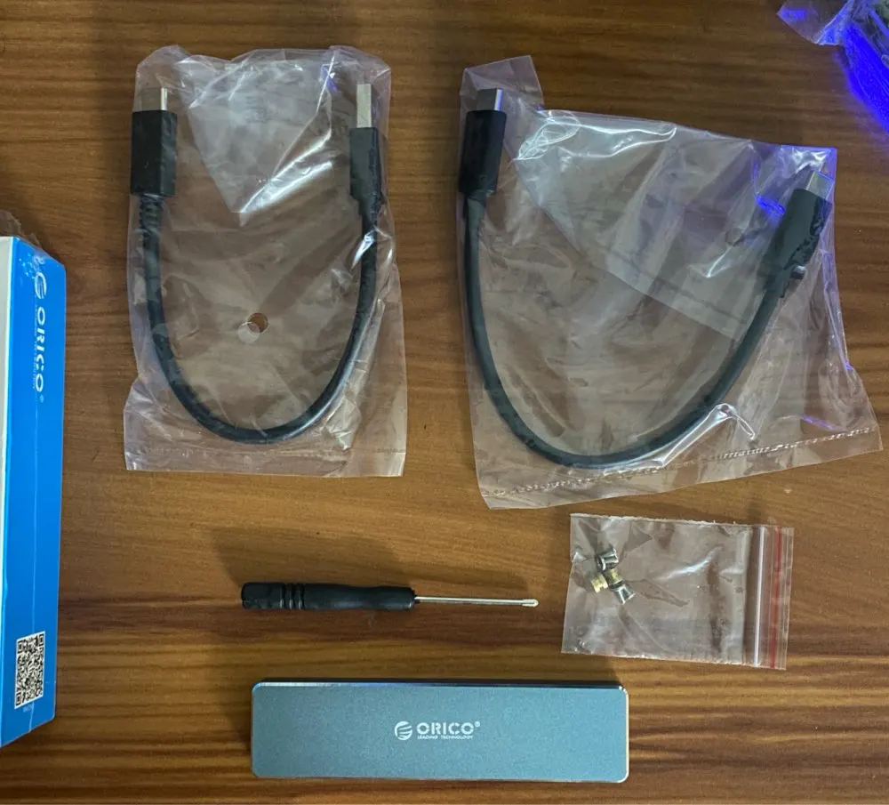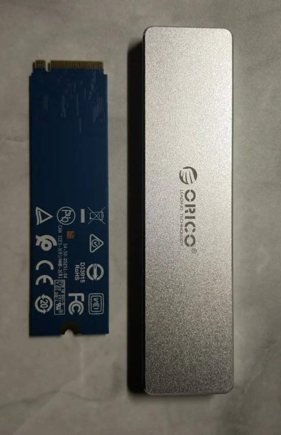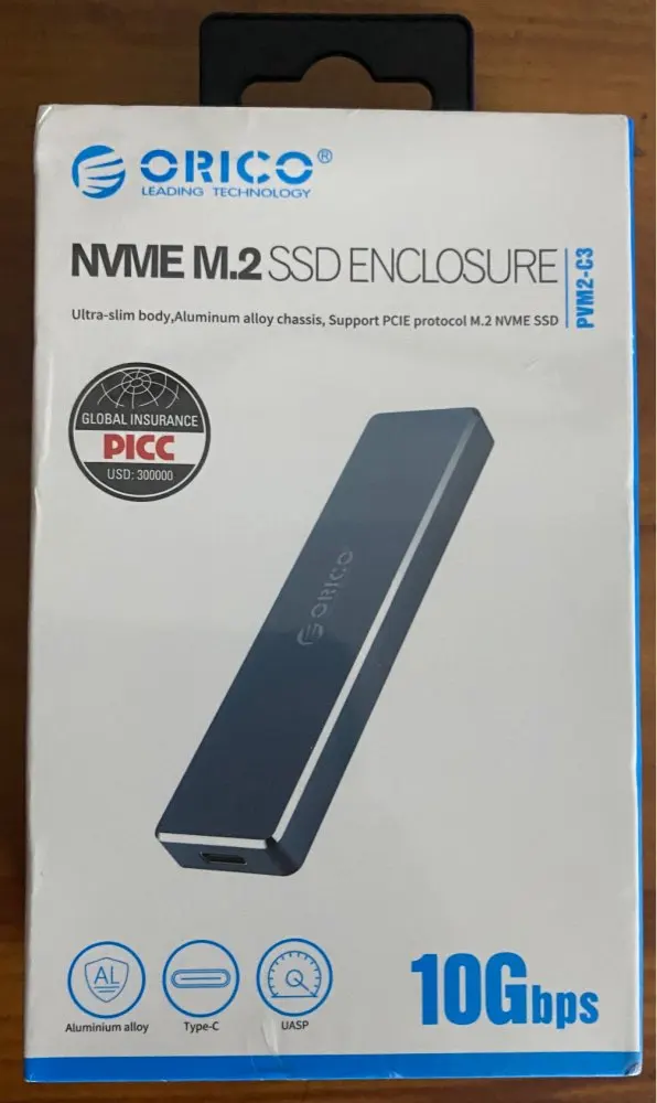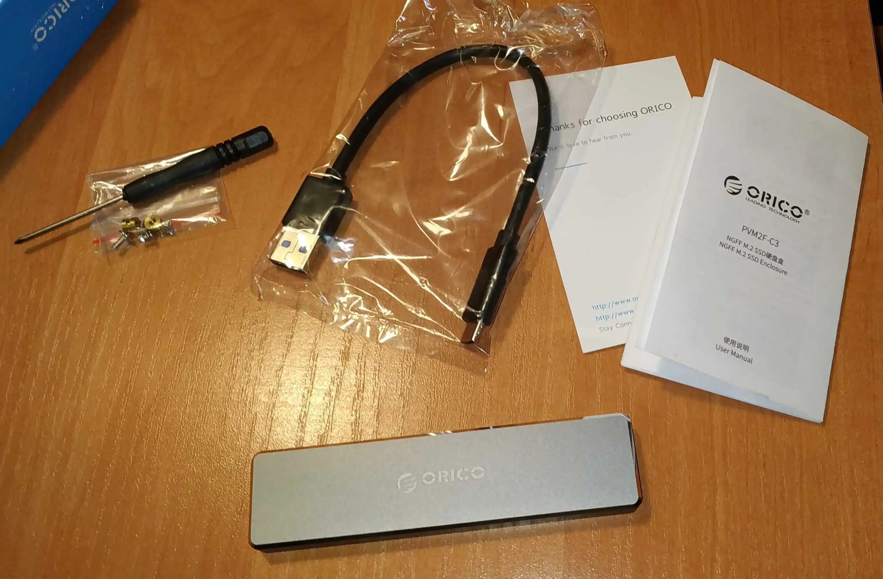 Заказ 11.11, получен 19 ноября. Тяжеленький, корпус - порошковый сплав аллюминия. В комплекте два кабеля коротких, пойдет только для ноута, USB-USB type-c и type-c-type-c, а также отвертка и болтики. Внимание, внтури корпуса две квадратных термопрокладки! Чтобы не грелся сильно, нужна одна длинная термопрокладка на всю длину корпуса. Чипа на плате noname, но надежда на Orico, как на хорошую контору. Я брал корпус для m.2 NMVE, который открвается путем сдвигания верхней крышки назад. Можно болтиком закрепить, можно скотчем и изолентой, чтобы отвертку не таскать с собой. Удобно. Скорость не проверял, так как диск только едет с Китая. Потом дополню.