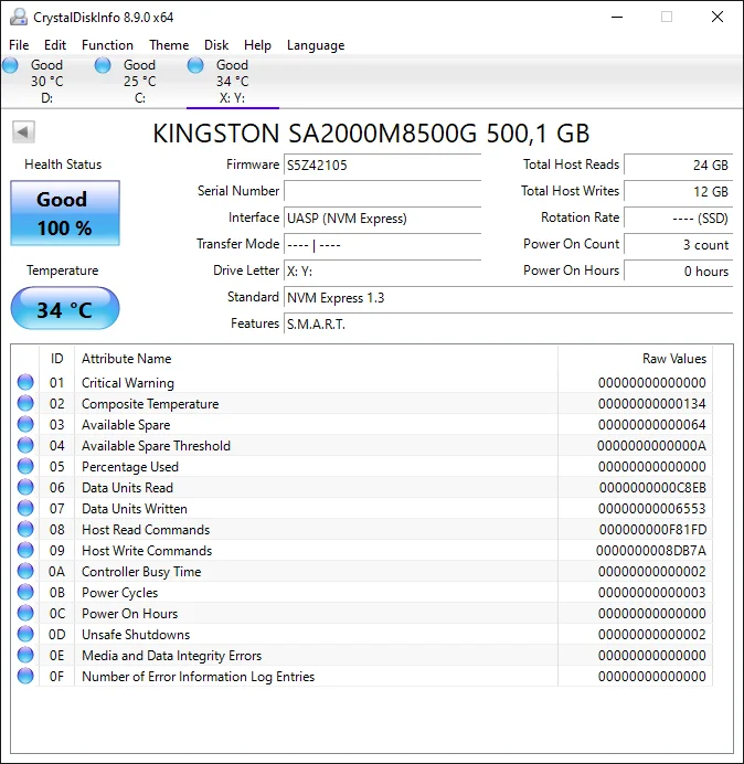 Доставили за 4 дня. Корпус металлический, достаточно компактный, выполнен аккуратно. Есть синий индикатор работы. Kingston A2000 завелся без проблем, скорость на скриншоте при подключении по USB 3.0, скорость на USB 3.1 должна быть еще больше. Работает с протоколом UASP, данные SMART передаются, функция TRIM тоже работает, хотя CrystalDiskInfo её не видит (проверял с помощью trimcheck). При работе корпус нагревается, т.к. работает как радиатор, сам SSD не перегревается. В комплекте есть две термопрокладки толщиной 1 мм, одну из них лучше наклеить прямо на контроллер на вашем SSD, т.к. это самая горячая часть. В целом, покупкой доволен.