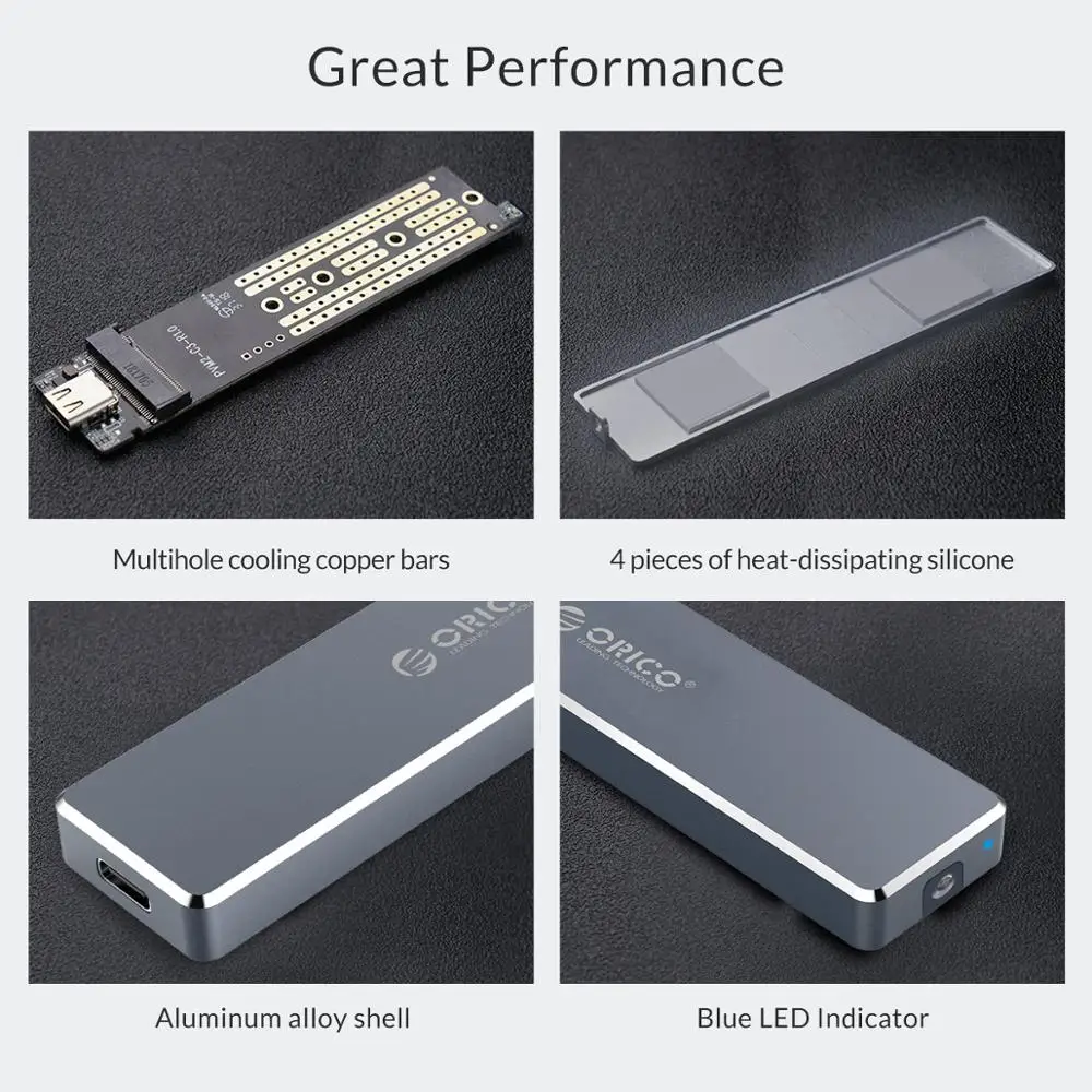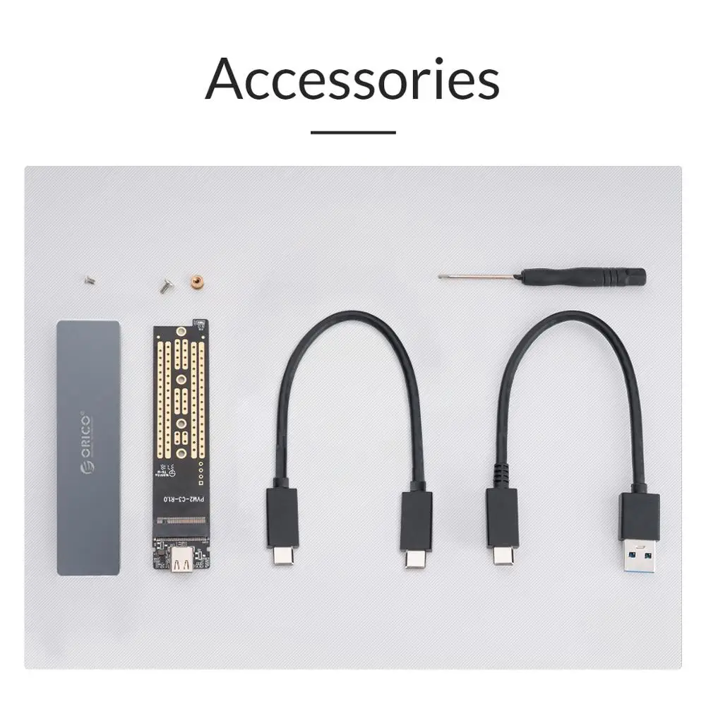 Чехол для жесткого диска ORICO M.2 NVME, с кабелем, для NVME PCIE NGFF SATA MB Key SSD Disk, чехол для жесткого диска s M.2 на USB Type C 3,1