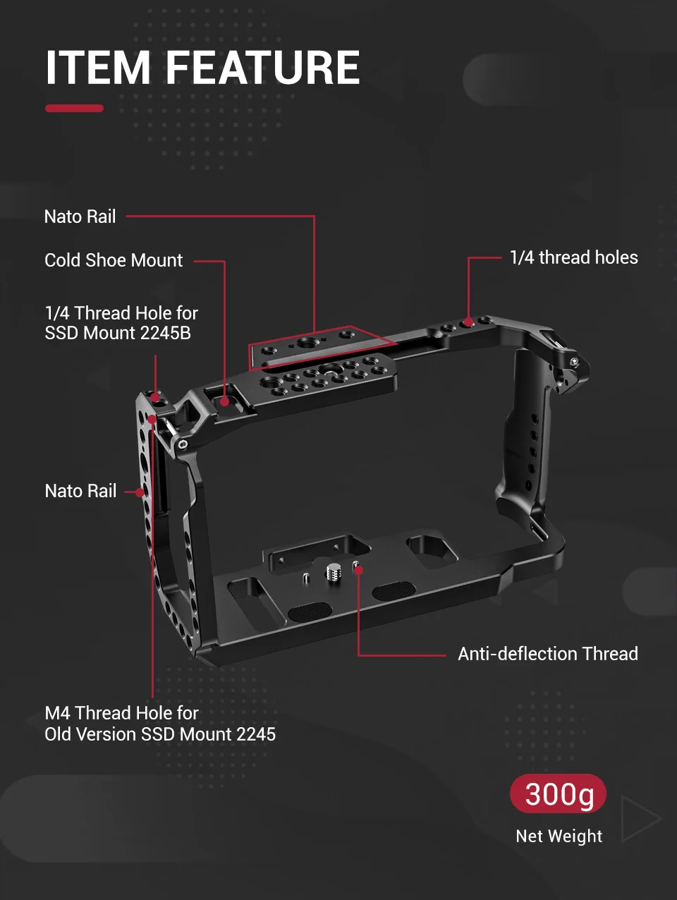 Полная Клетка SmallRig для карманной кинокамеры Blackmagic Design 4K & 6K (новая версия) 2203B является облегающей клеткой. Он надежно крепится к камере с помощью винтов 1/4 ''-20 сверху и снизу, с дополнительными контактами и резиновыми прокладками на базовой пластине, предотвращающими переключение и царапины. На верхней и левой стороне клетки встроены рельсы NATO, где вы можете прикрепить SmallRig NATO top Handle 1955 или SmallRig Wooden NATO side Handle 2187 для ручной съемки. Несколько резьбовых отверстий 1/4 "-20 и 3/8" 16 и отверстия ARRI предназначены для прикрепления аксессуаров, таких как 2070 шаровой головки SmallRig. Для пользователей, которые записывают с Samsung T5 SSD Mount 2245B-хороший выбор. Клетка совместима с кабелем SmallRig HDMI и USB-C хомутом 2246B для фиксации кабелей. Он работает с адаптером SmallRig Metabones поддерживает 2247 на BMPCC 4K, чтобы ваши линзы были стабильными. Кроме того, на нижней пластине предусмотрен встроенный шестигранный гаечный ключ.