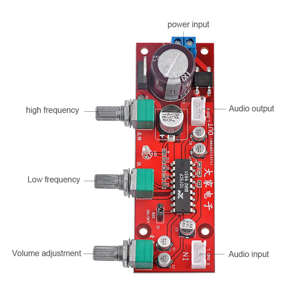 Миниатюрная тональная звуковая плата AIYIMA XR1075 BBE, предусилитель BBE, плата предварительного усилителя высоких басов, плата постоянного тока 12-24 В, 9-16 В переменного тока