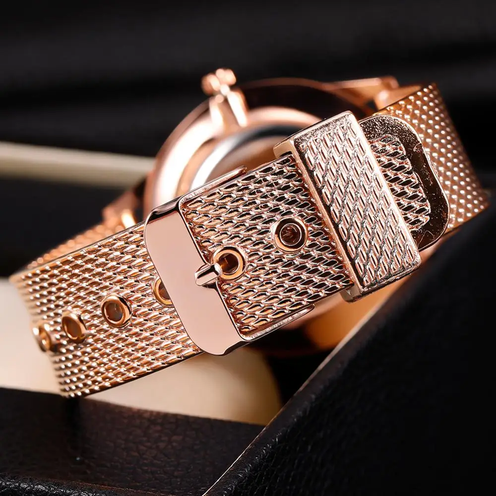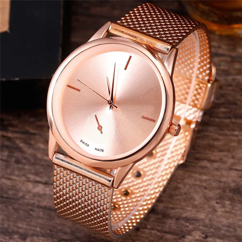 Relogio Feminino женские роскошные часы Розовый Золотой металлический сетчатый ремешок из нержавеющей стали аналоговые кварцевые наручные часы минималистичные женские часы