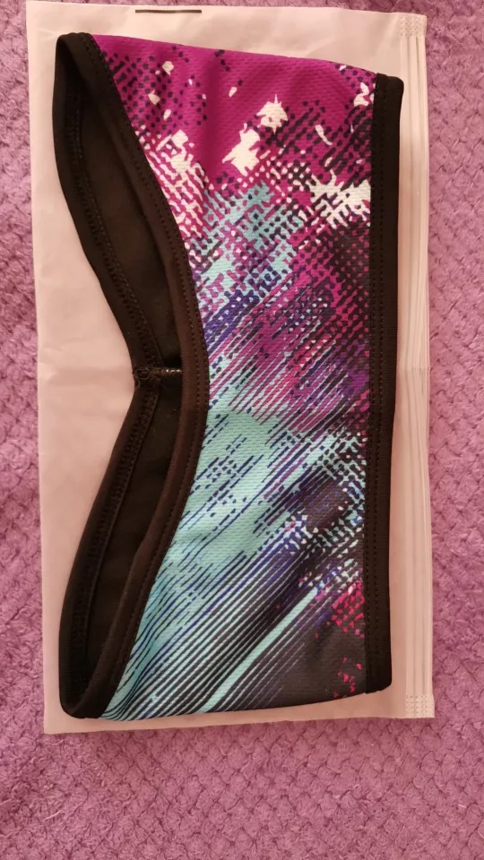 Розово-голубая на самом деле более цветная, чем на фото. Там ещё есть желтый и зеленый. Но так даже больше мне нравится. Качество исполнения хорошее, придраться не к чему. тянется нормально. В прохладную погоду бегать будет прекрасно. Ждём весны)