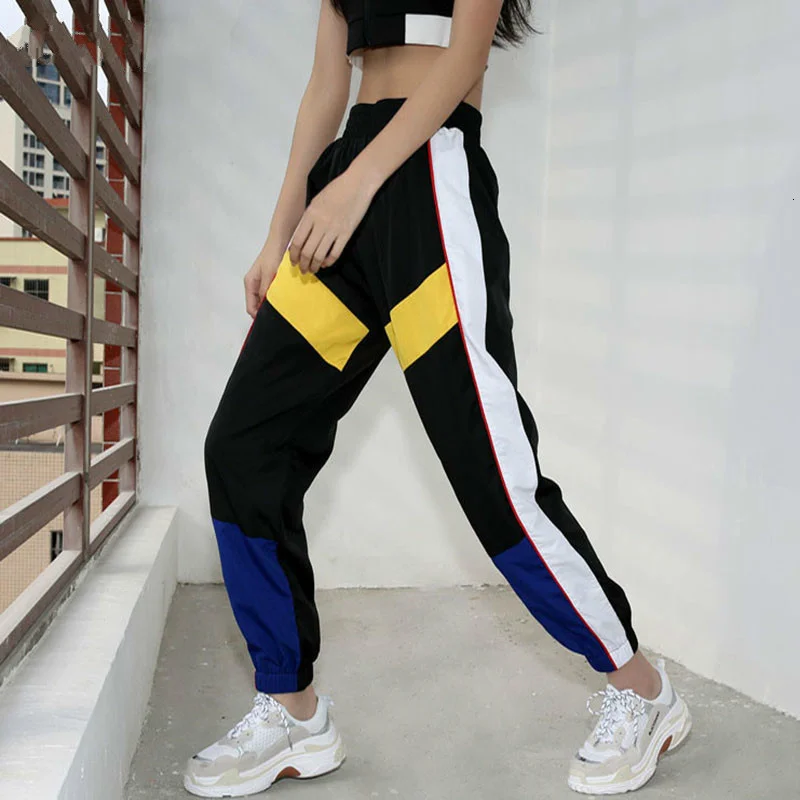 Брюки-султанки SHENGPALAE женские в стиле пэчворк, длинные спортивные штаны с Высокими Боковыми полосками, черные брюки с эластичным поясом для фитнеса и тренировок, FI226