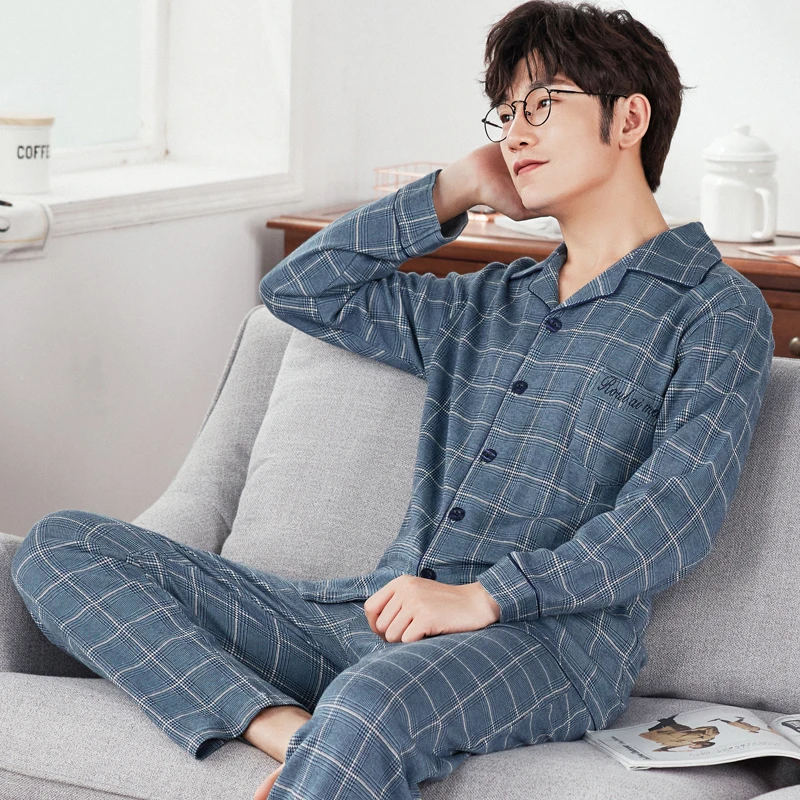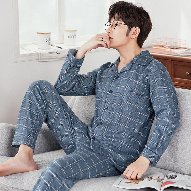 Осень Длинный натуральный хлопок пижамный комплект для мужчин Удобная Пижама пижамы, мужские сексуальные спортивные шорты современный Стиль мягкие уютные размера плюс одежда для сна