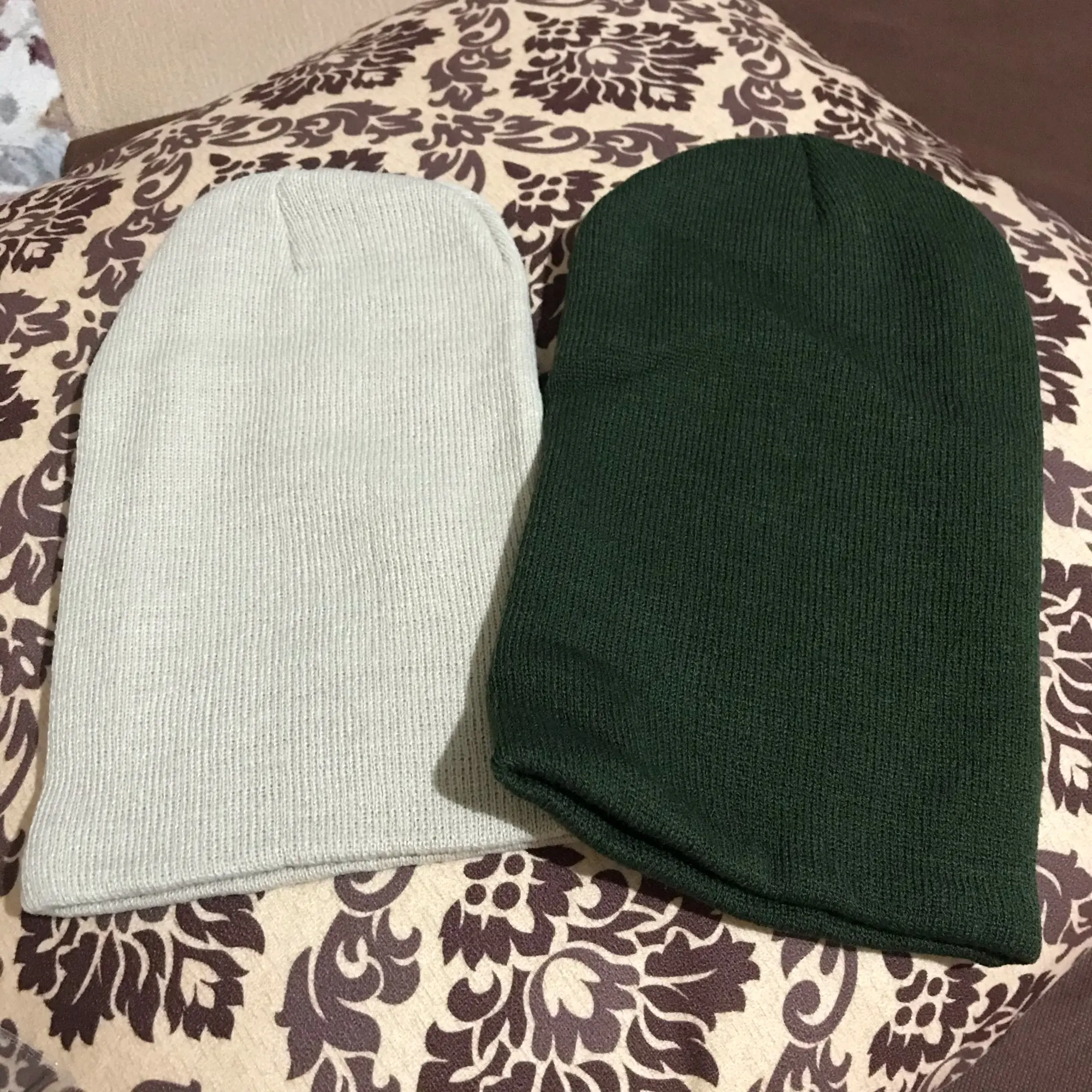 Обычные шапочки, без наворотов. Качество работы хорошее. Материал не раздражает. На первый морозец пойдет.