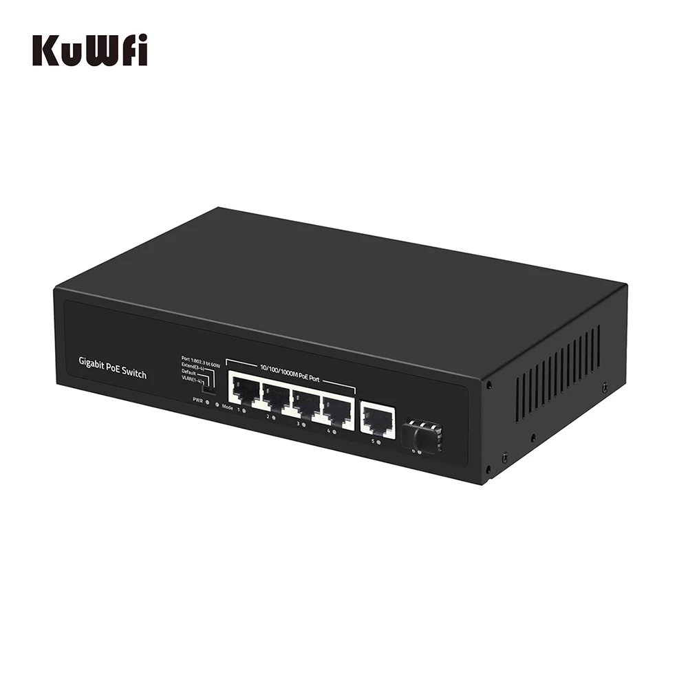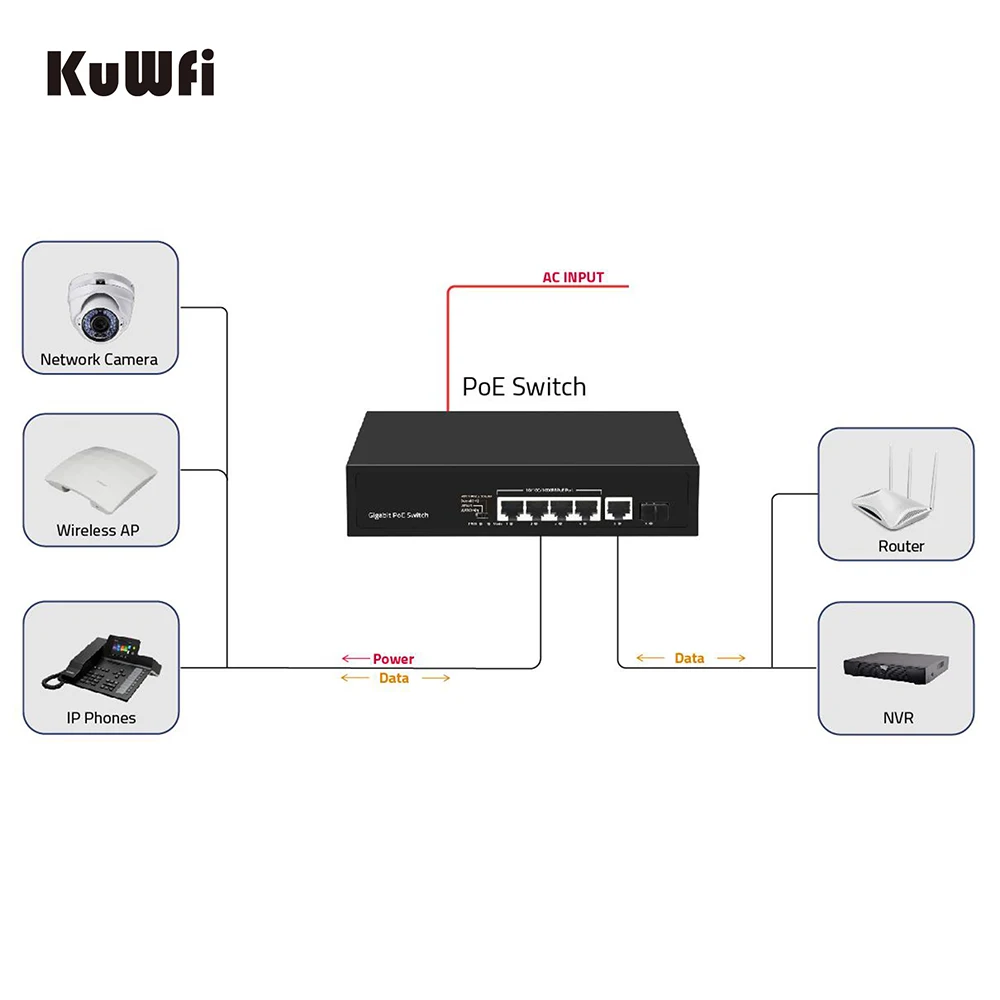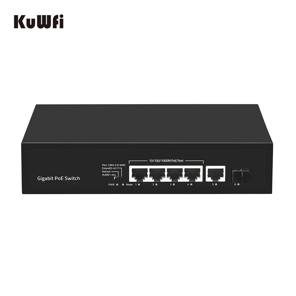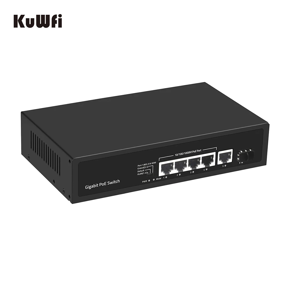 KuWFi 6 портов POE коммутатор Gigabit Ethernet сетевой коммутатор стандартизированный RJ45 порт IEEE 802,3 afat для POE камер