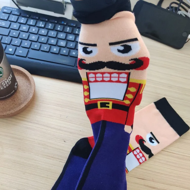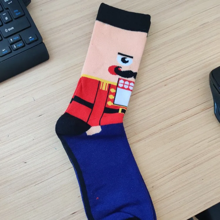 Носки мужские хлопковые в полоску, смешные Мультяшные, с рисунком рождественской елки, праздничные, для зимы