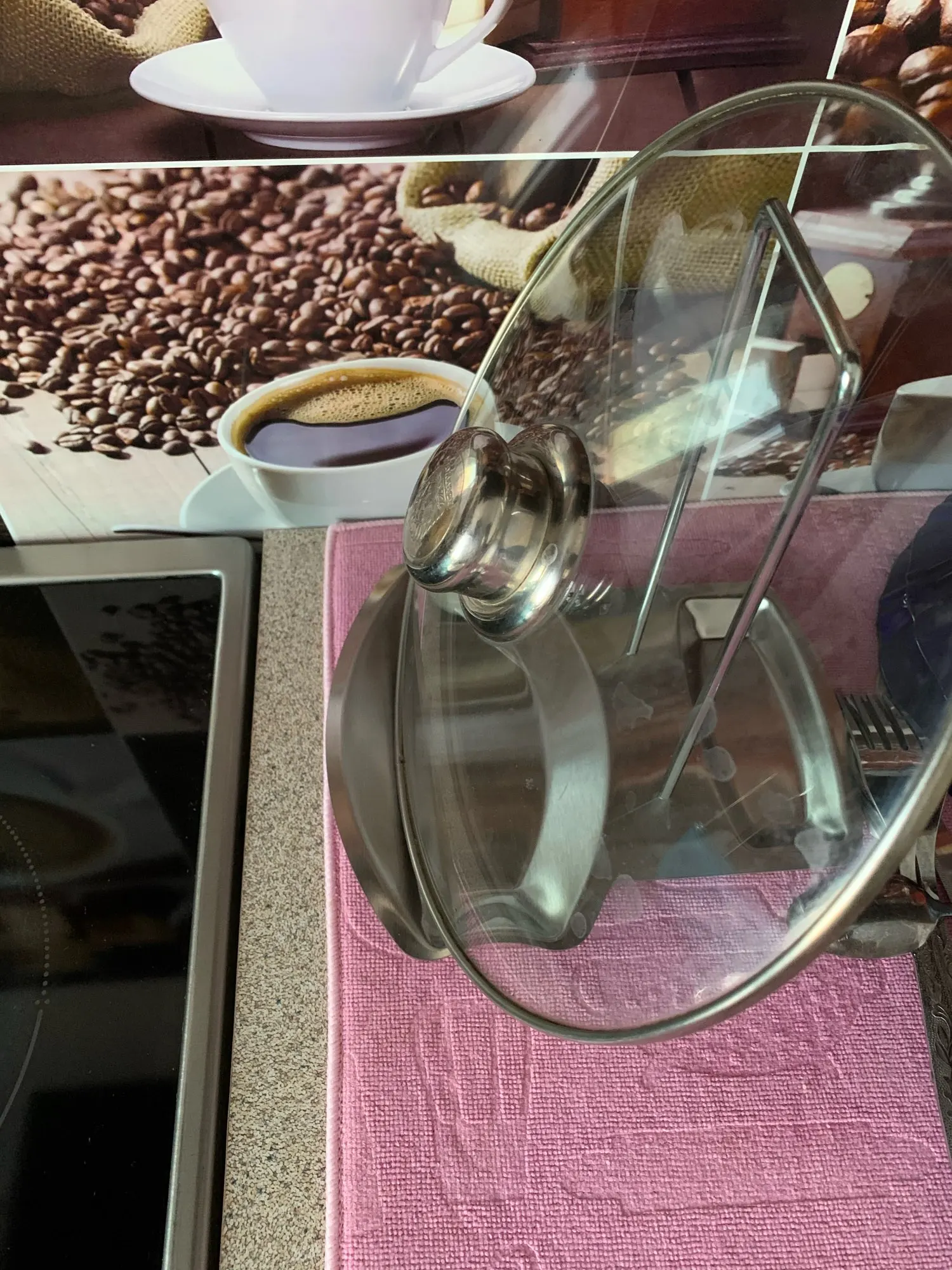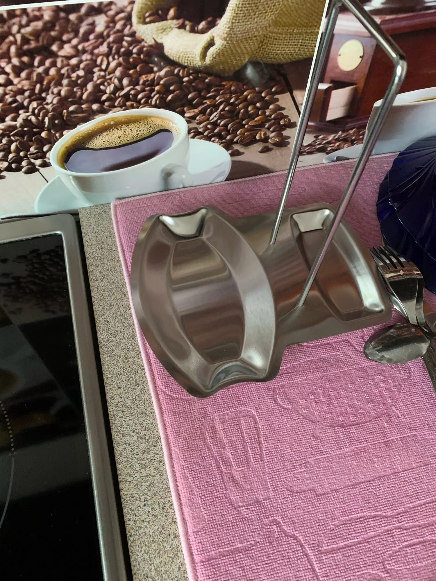 Хорошая подставка, большую крышку от сковороды держит отлично. Я довольна.