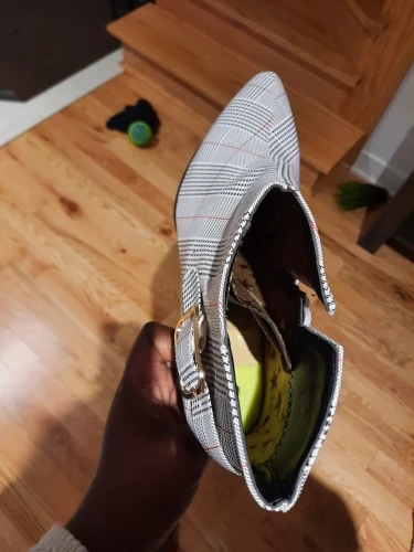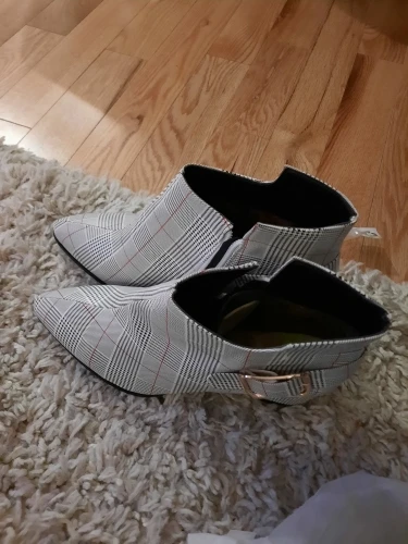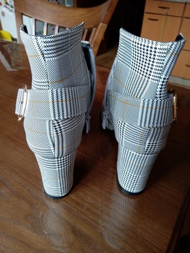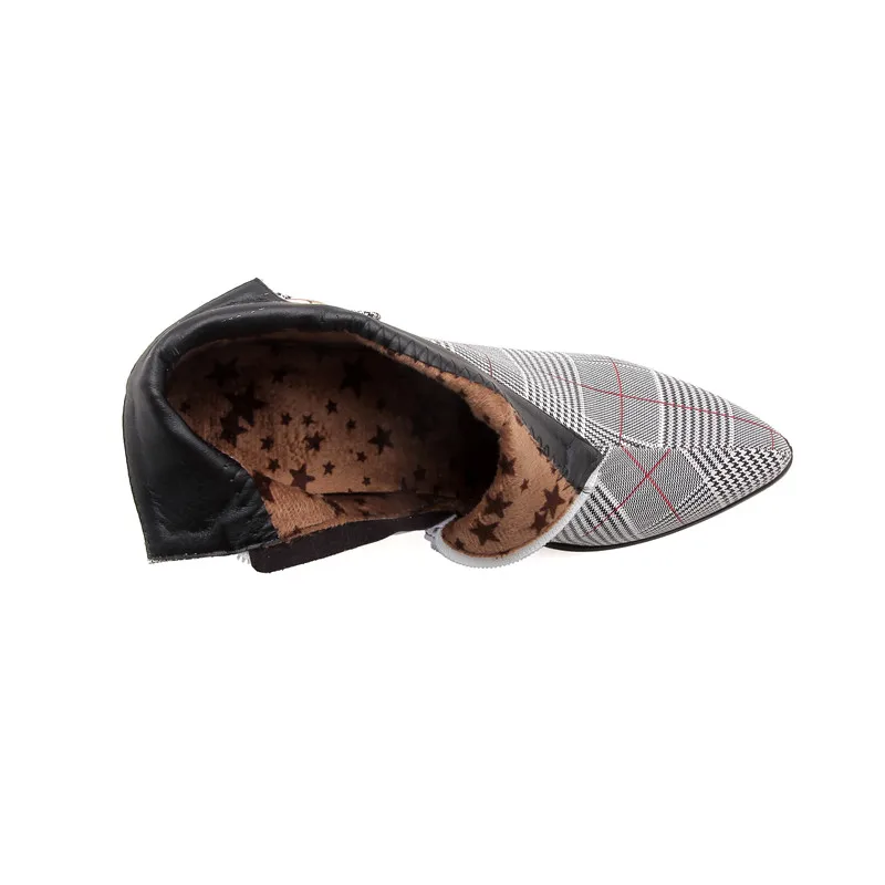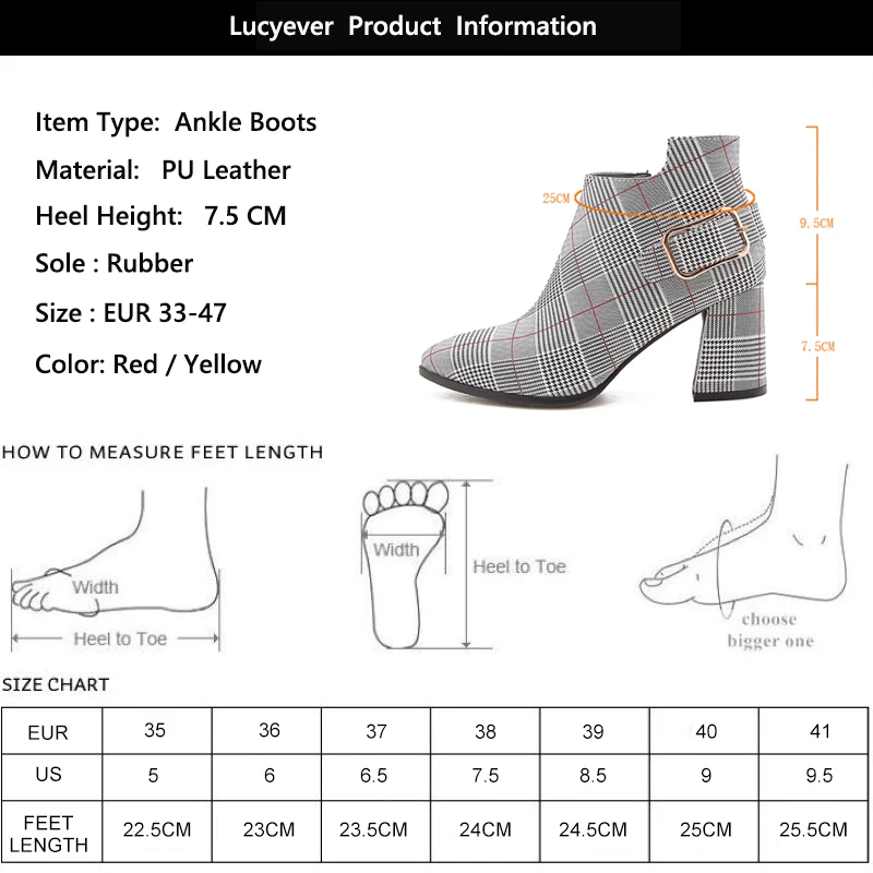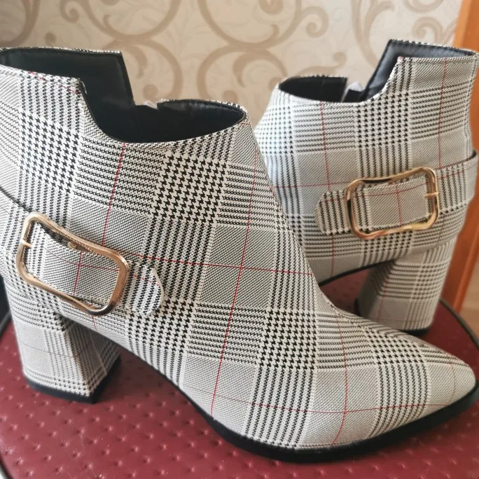 Женские ботильоны Lucyever, на толстом высоком каблуке, с боковой молнией и пряжкой, повседневные, в клетку, с острым носком, Осень-зима
