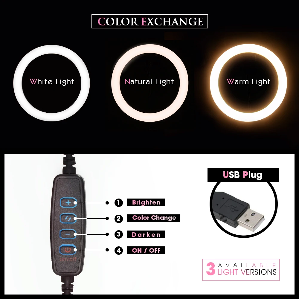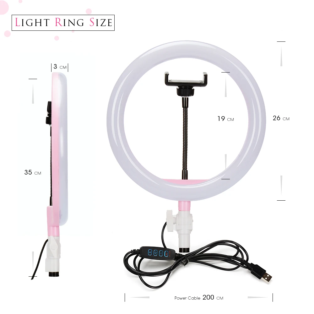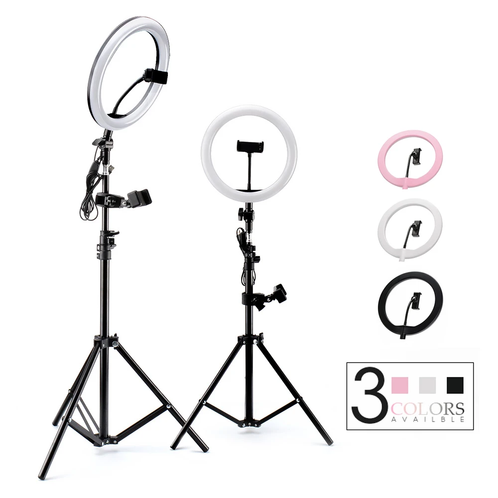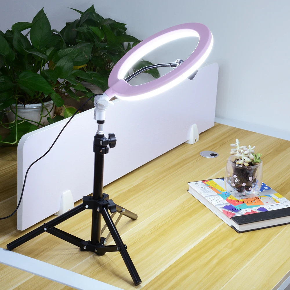 Кольцевой светодиодный светильник для фотостудии, с регулируемой яркостью, с USB-разъемом, со штативом, для макияжа, Youtube, видео, прямых трансляций