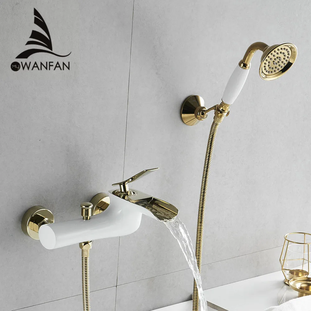 Смесители для ванны, хромированный душевой комплект для ванны, белый душевой набор, смеситель для ванны, двойной смеситель для душа, настенный монтаж для ванной комнаты WF-6018