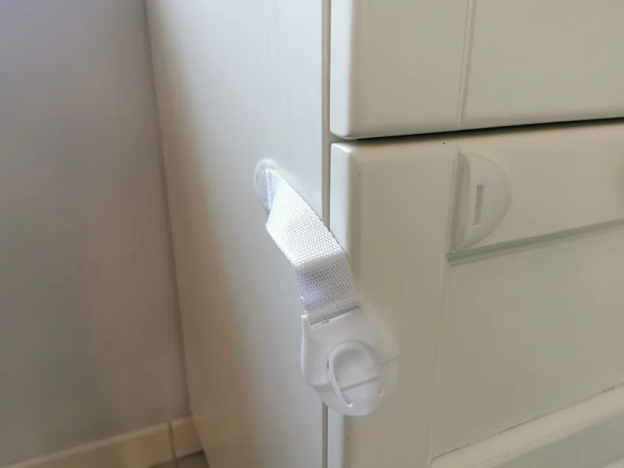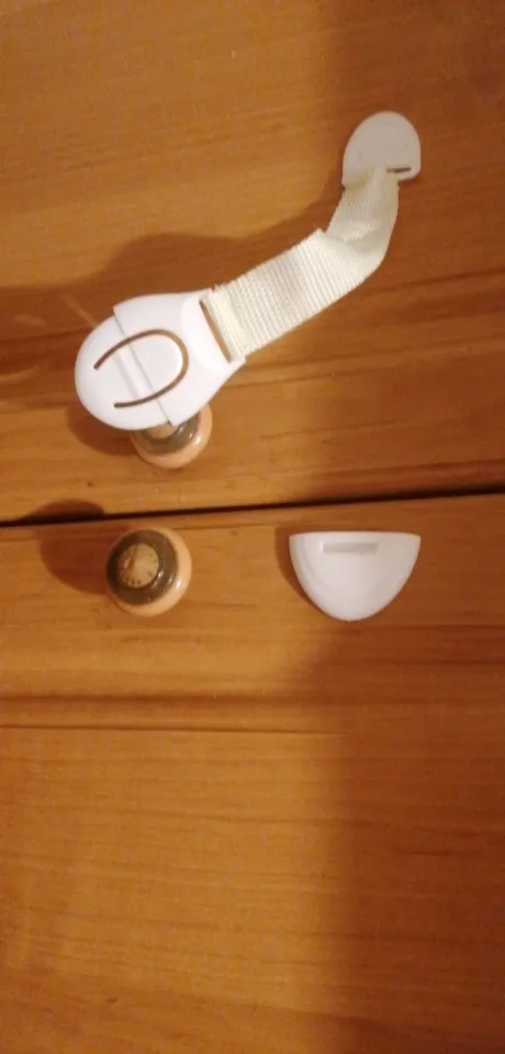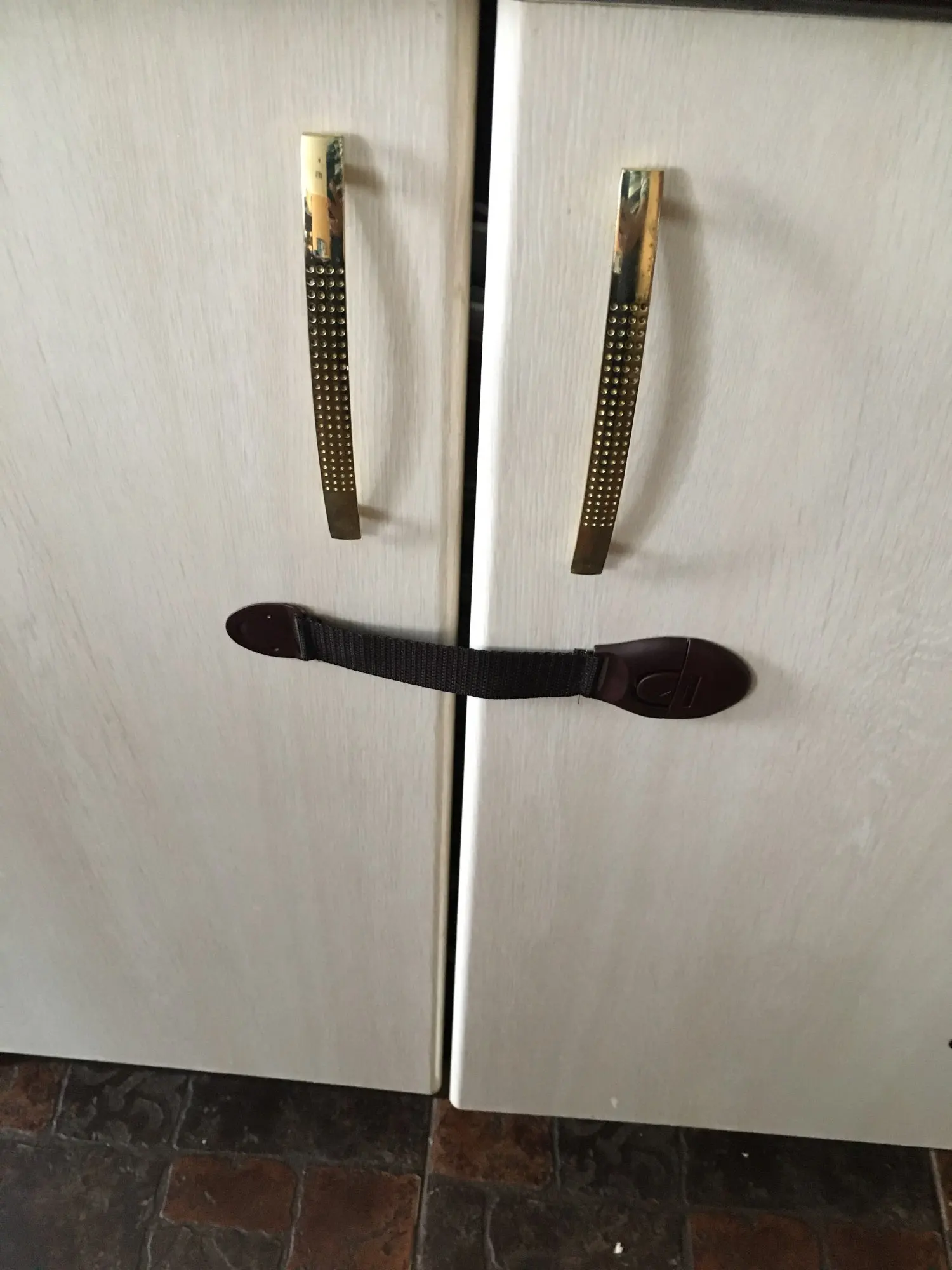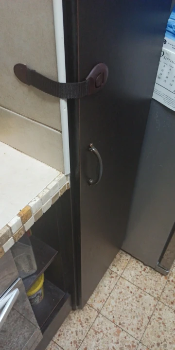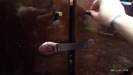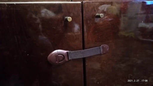 Дочь очень быстро сообразила, как отстегнуть замок, только для высоких шкафов