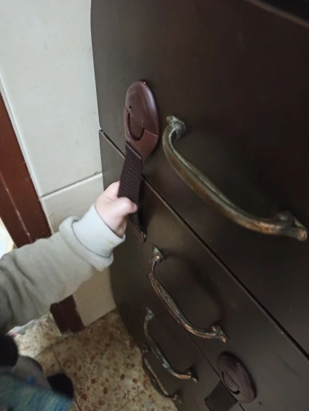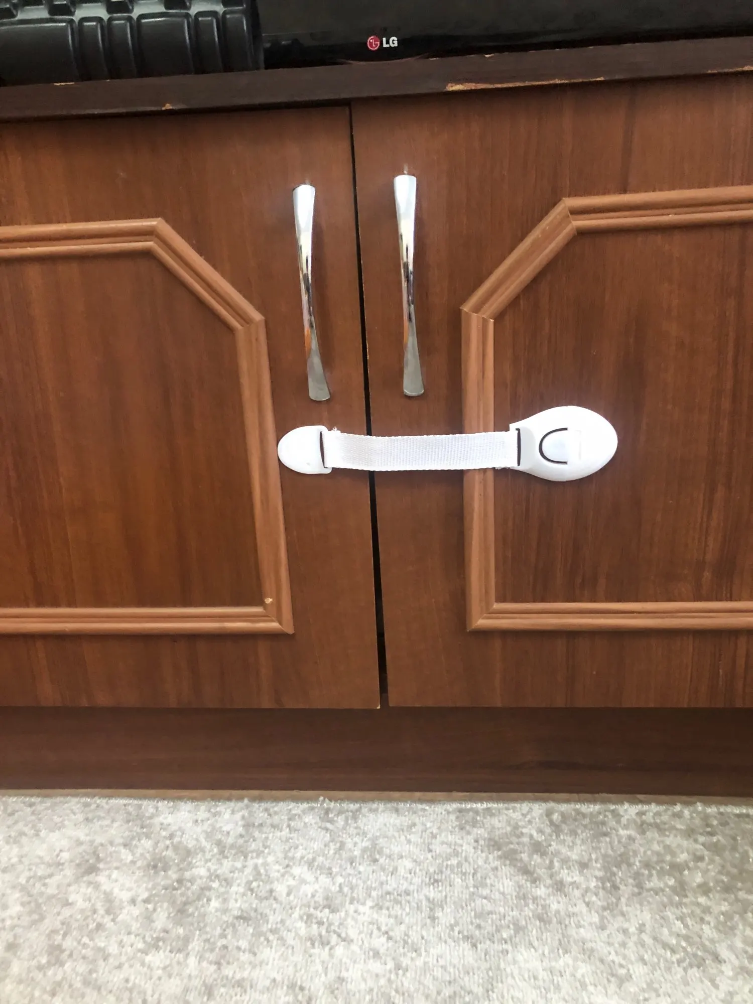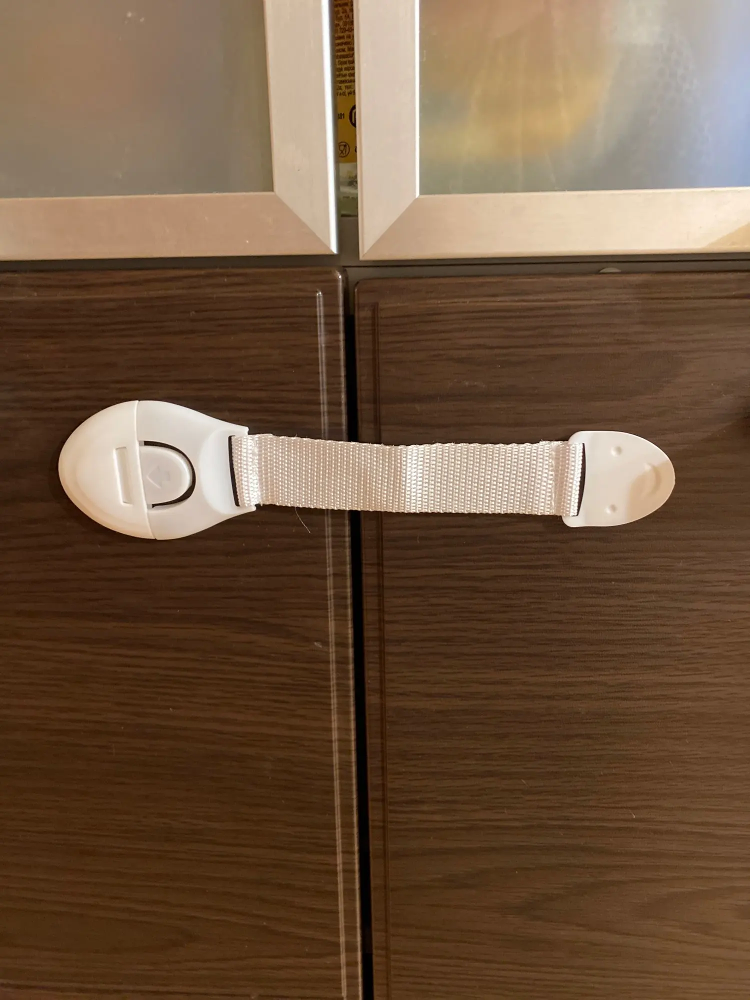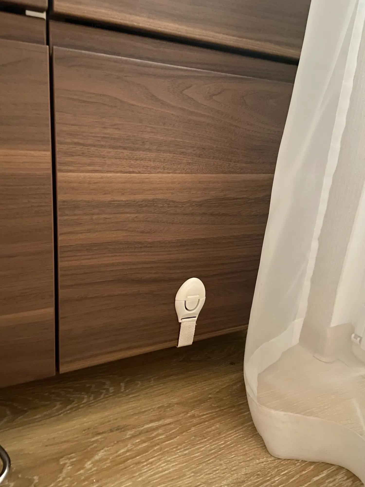 Дочь очень быстро сообразила, как отстегнуть замок, только для высоких шкафов