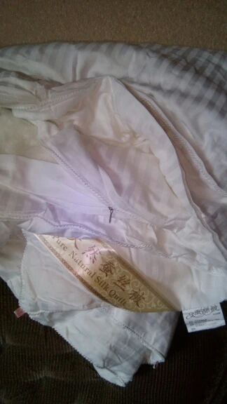 Суперское одеяло! Шелк натуральный. Перепутать его сложно и на ощупь и по весу. В пододеяльнике замок встроен так, что можно просмотреть все полотно. Сам пододеяльник качественный. Полотно не простегано, а прихвачено в нескольких местах как и положено шелковому одеялу. Если бы была оценка 5+ я бы ее поставила. Брала маме самое тонкое, на лето. Как ни странно, но она сказала, что под ним тепло, хотя сначала решили, что слишком тонкое. Сравнивали два летних одеяла - одно простое, второе шелк. Так вот если в них одновременно поместить руки, то , которое шелковое, по ощущениям заметно прохладнее. Надеемся, что летом в жару будет немного охлаждать, а не греть :-)), не смотря на то, что мама говорит, что сейчас ей было тепло под ним спать.