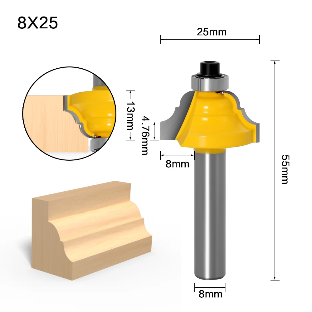 1 шт., Высококачественная двойная фреза в римском стиле Ogee, большой хвостовик 8 мм, фреза в форме ласточкиного хвоста, резак для деревообработки