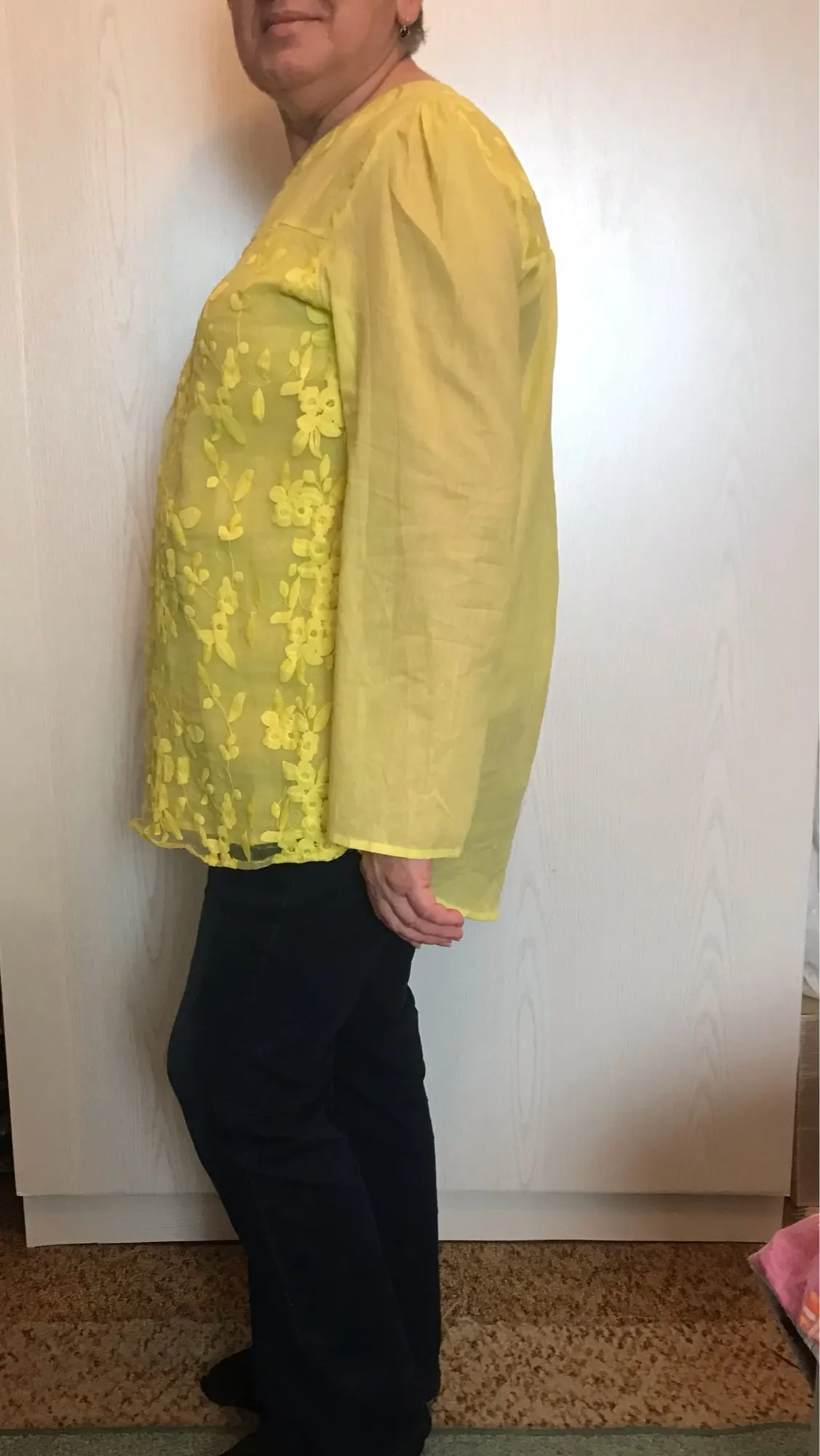 Блузка красивая. Я купил это для своей мамы. Она в восторге от этого. Удобные, нежные и легкие. Соответствует описанию. Размеры для мам-обхват груди: 104 см, ширина плеч: 44 см, объем руки: 33 см, обхват талии: 95 см, Бедра: 113 см я купил 3XL, и он идеально подходит ей. Нет запаха. Швы хорошо сеют. Он был отправлен очень быстро, и я пришел в Австралию после примерно. 30 дней. Я рекомендую продавцу.