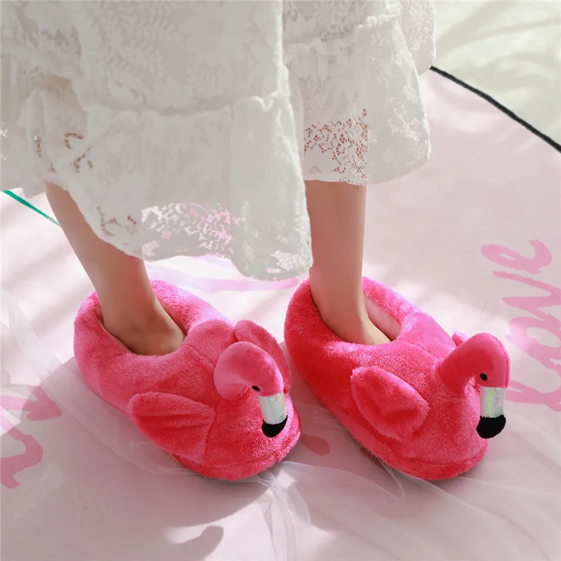 Тапочки женские зимние плюшевые, с рисунком фламинго, розовые