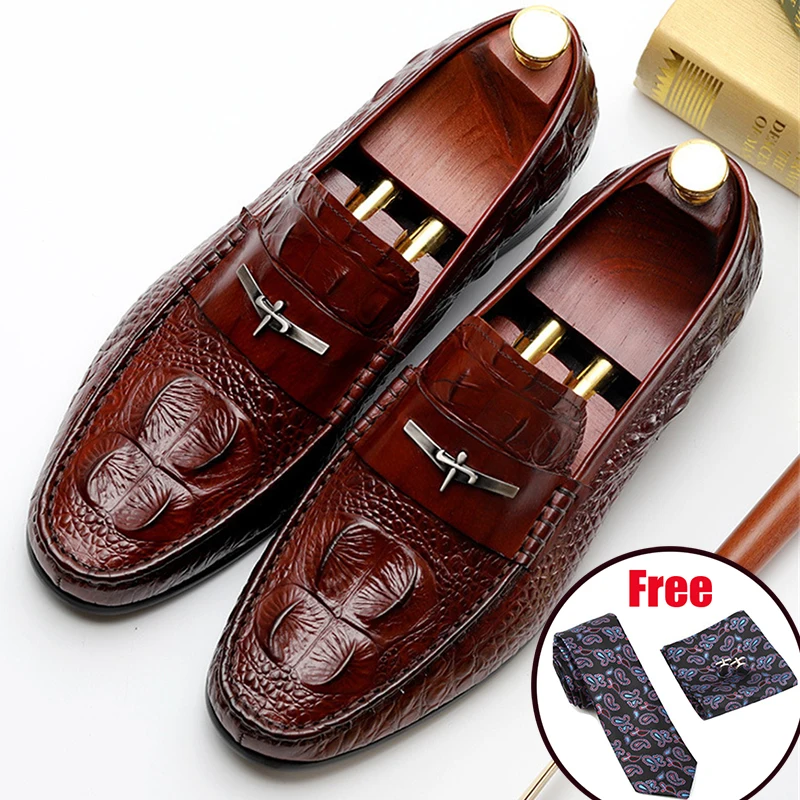 Мужские повседневные туфли из натуральной кожи аллигатора без шнуровки, мужские свадебные мужские лоферы, обувь для вождения 2022