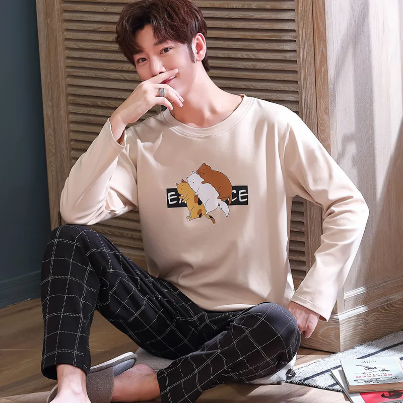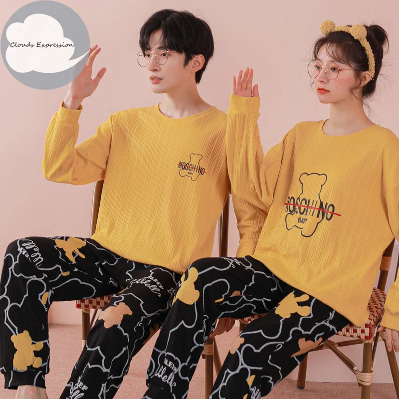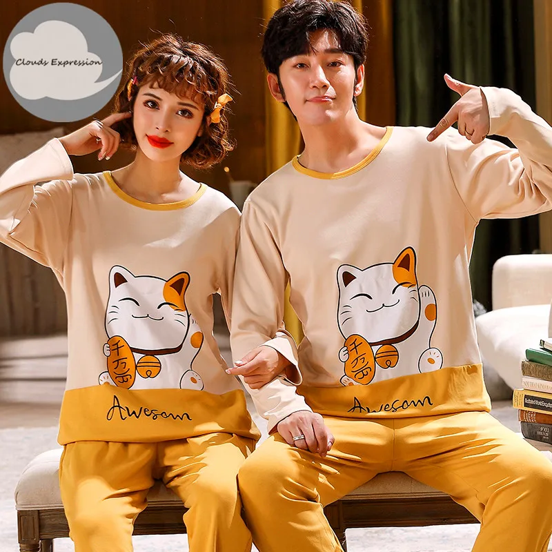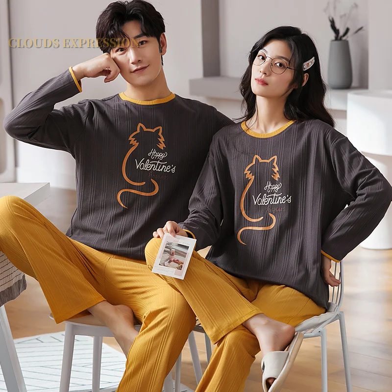 Осень-зима полосатая Хлопковая пижама-костюм с изображением любимых пижамы PJ комплект Для женщин, одежда для сна с рисунком персонажей из мультфильмов, Для мужчин, Пижамный набор пижам для девочек, пижамы, домашняя од