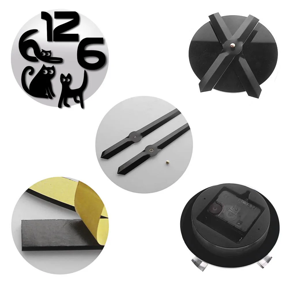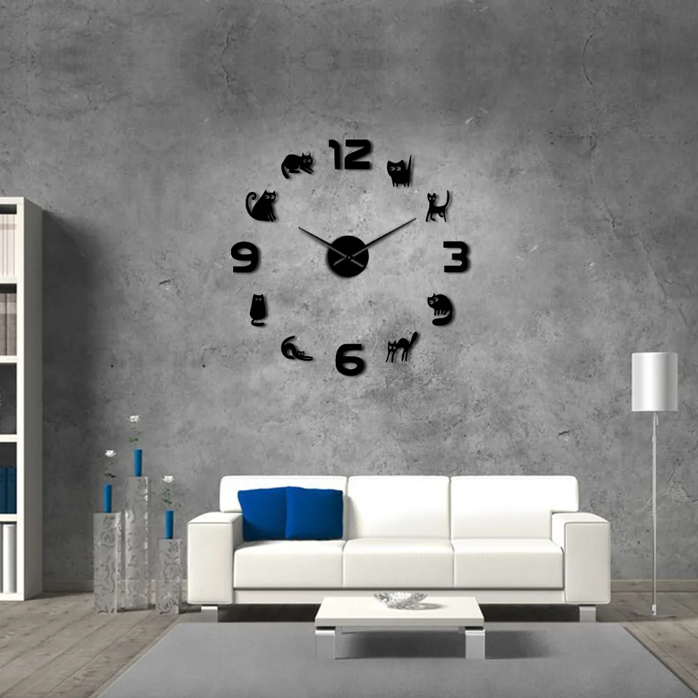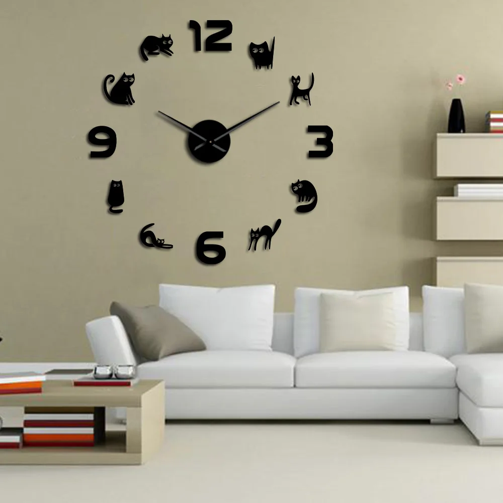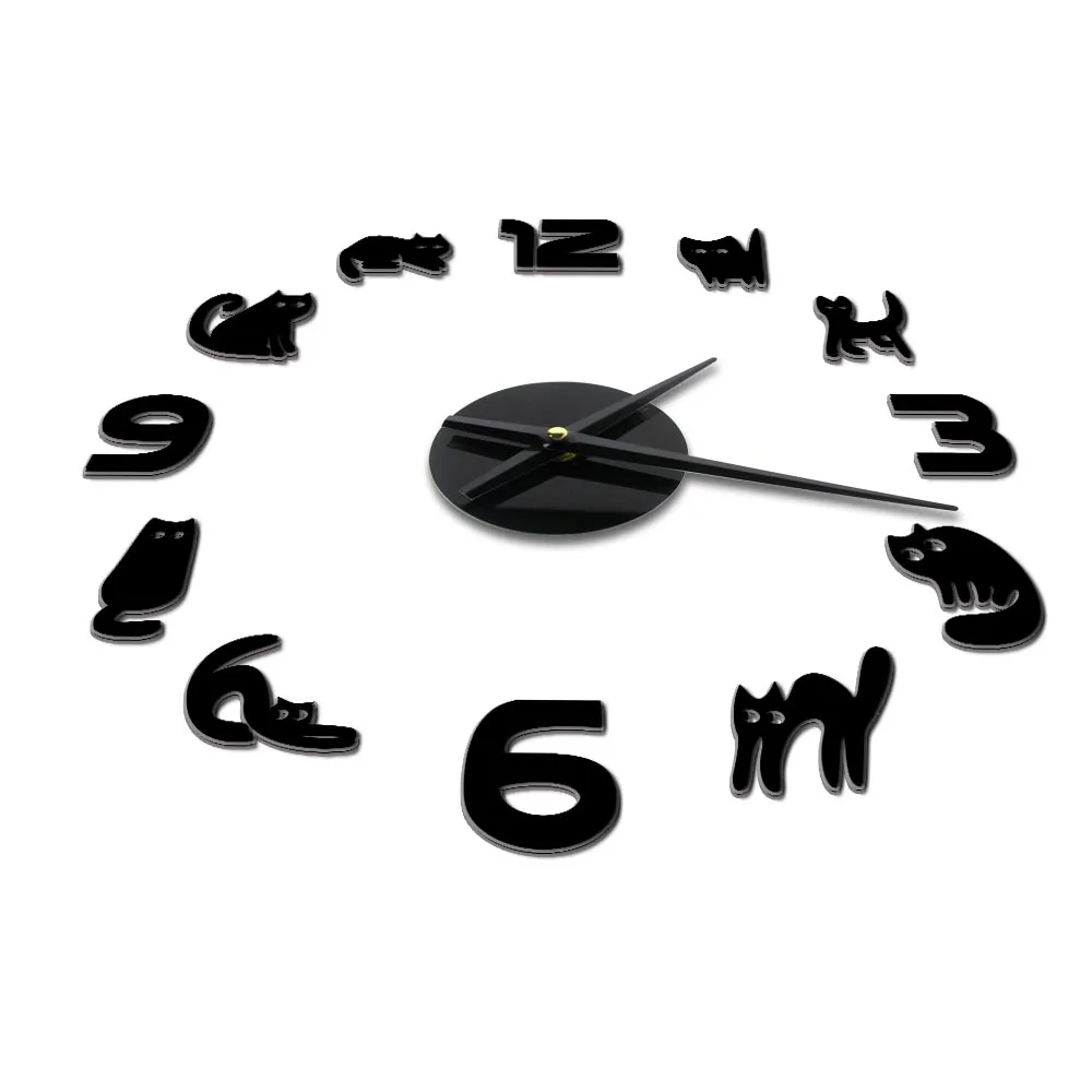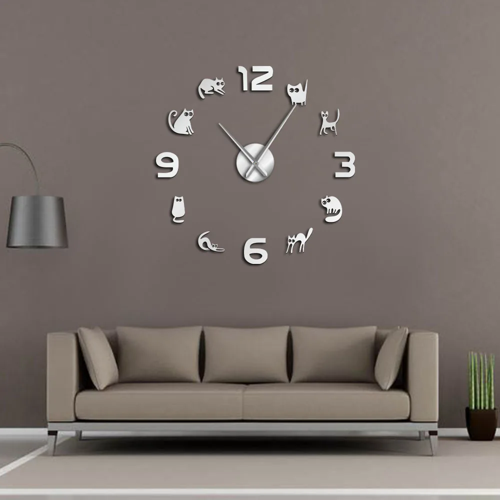 Безрамочные настенные 3d-часы с котятами, сделай сам, бесшумные кварцевые акриловые зеркальные наклейки, часы, часы, модное украшение для дома, подарок кошке или любимому