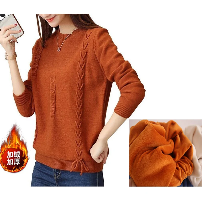 Зимний плотный бархатный вязаный свитер большого размера 4XL, теплый пуловер с бархатной подкладкой, свитер 2022, свободный облегающий женский свитер