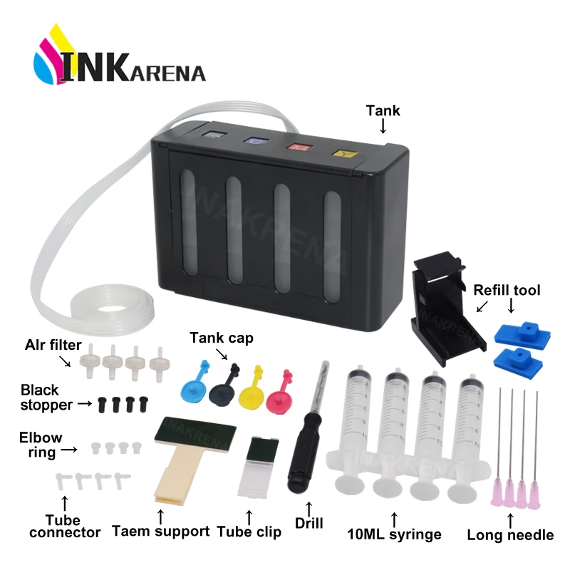 Набор чернильных резервуаров INKARENA Ciss для принтеров Canon PG-445, CL446, PG510, CL511, PG440, CL441, Ciss для HP 302, 301, 122, 300, 650, 121, 21, 22, 140