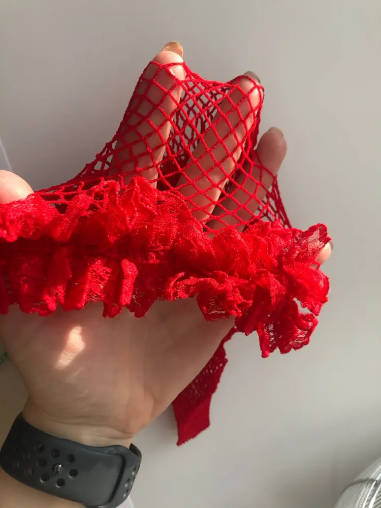 Чёрные в крупную сеточку преднозначен на высоких и худых, так как резинки на чулках не налазят высоко, а только выше колен, так что я не довольна. А вот красные в сеточку с оборочкой это, что-то, они такие мягкие, приятные к телу и резинка не давит, качество отличное я рекомендую. Упакованы все чулки очень хорошо в отдельные герметичные пакеты