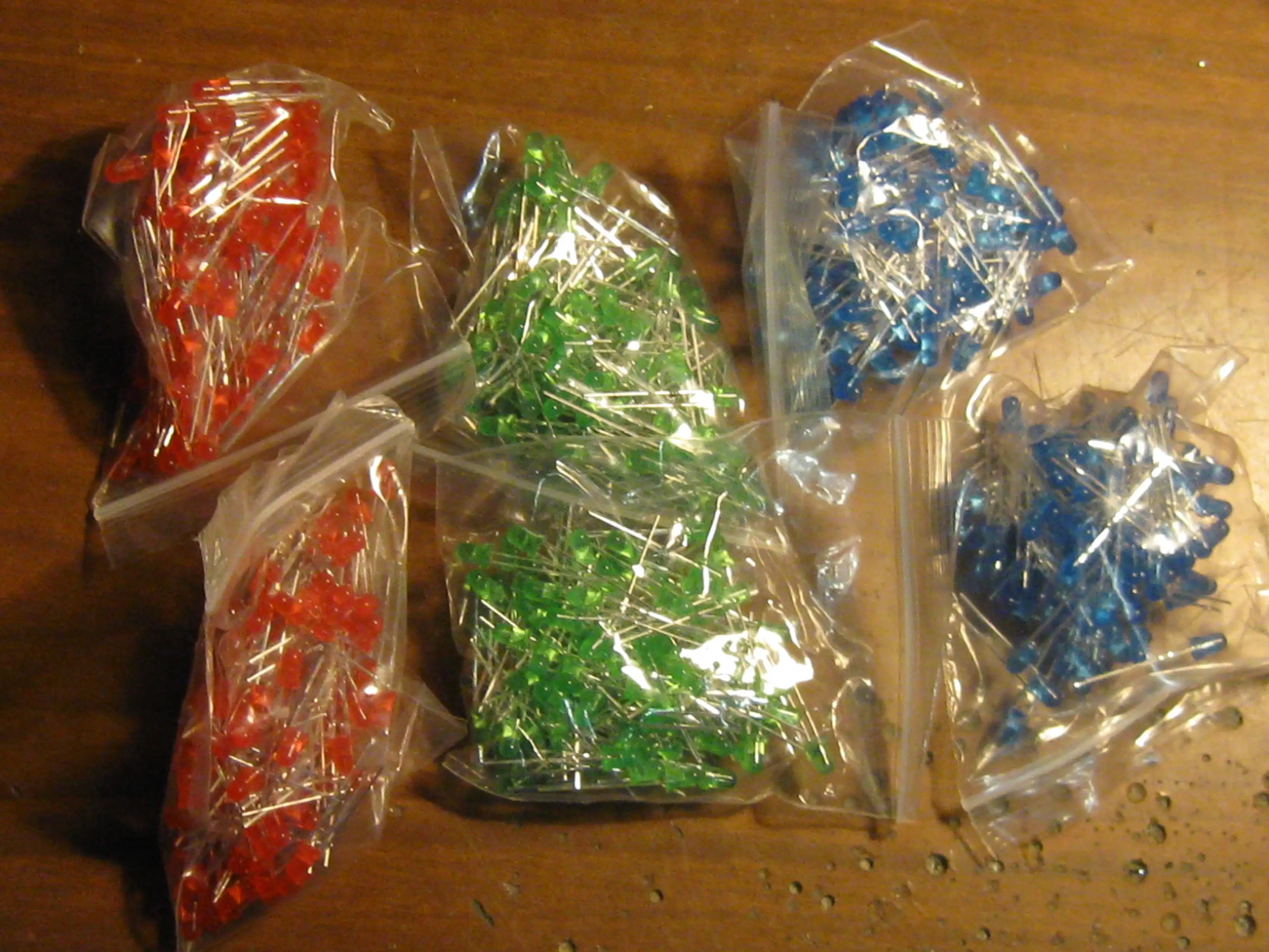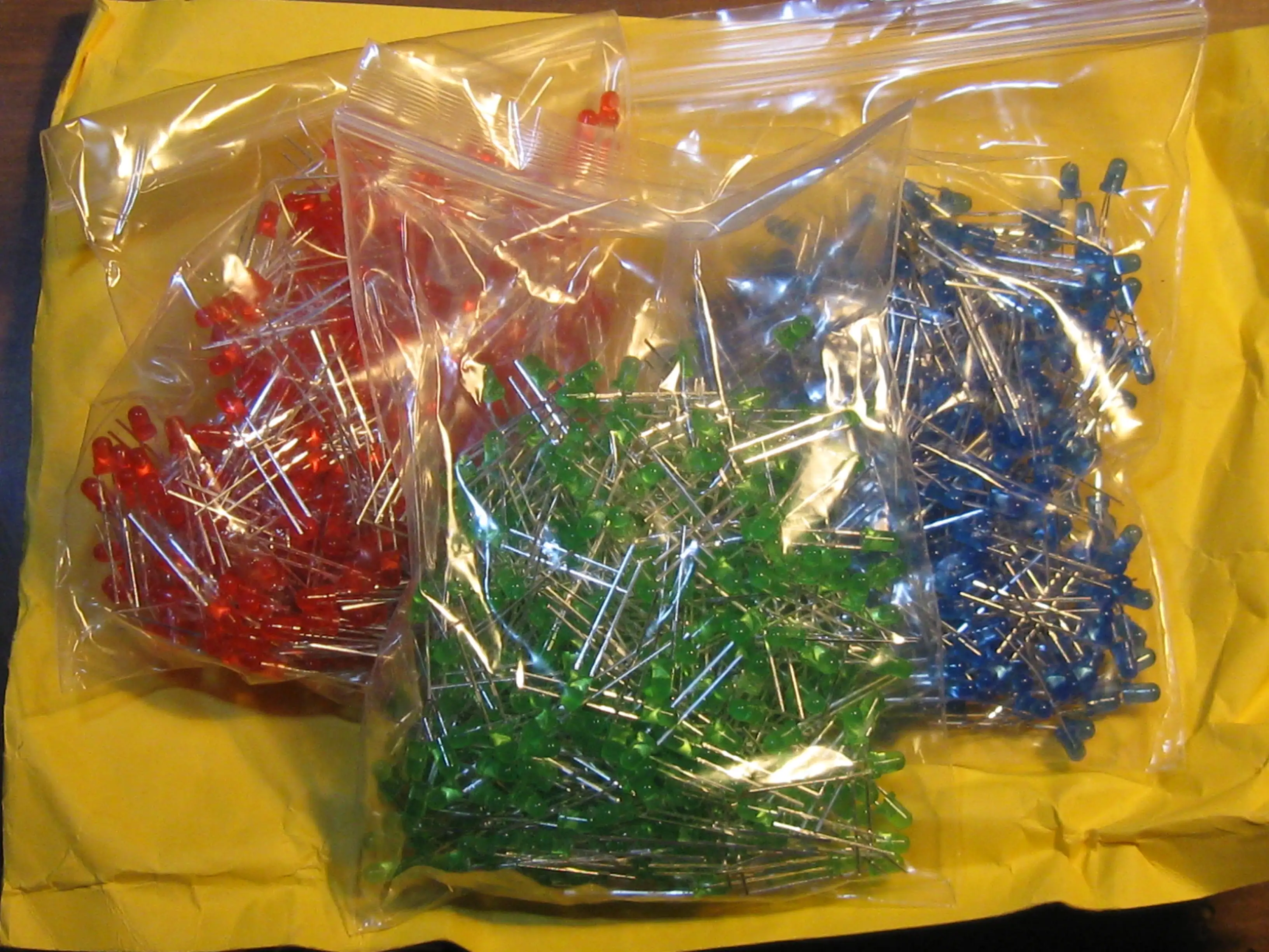 Получено. Работают. Качество алишное. Для макеток пойдут, для приличных поделок я бы побрезговал. В отличие от нормальных светодиодов спроектированных инженерами (а не крестьянами или не пойми вообще кем) у этих - выводы идут внутри корпуса прямо вдоль поверхности и при пайке (или нагреве при обсадке термоусадкой) выводы запросто выворачиваются из корпуса при небольшой механической нагрузке. Чего нет у диодов приличных производителей (типа Kingbright и т.п.) - там выводы имеют формовку на входе в компаунд и внутри корпуса идут в глубине - как следствие держатся хорошо.