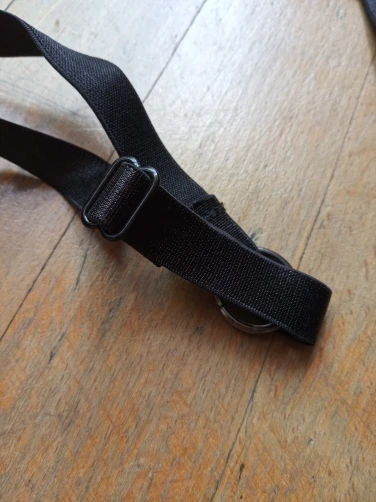 Эластичная лента, такая же как лямка на бюстгальтерах. Все заклепки, кружки, регуляторы размера на месте. Правильно пошито, без ошибок. Бывает не правильно пришьют и тогда изделие перекручено. В этом случае- нет. Все прекрасно. Немного торчат нитки, но это не критично. Доставка в Украину составила две недели. Продавец быстро отреагировал и сразу отправил. Спасибо большое. К покупке рекомендую.