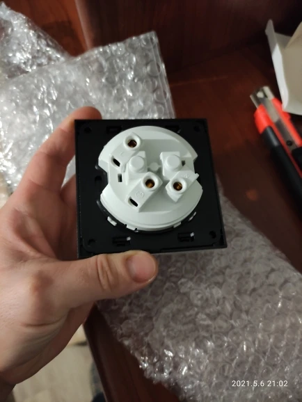 Продавец отправил заказ очень быстро. Заказ пришёл неожиданно скоро, к моей радости. Упакован был надежно, всё пришло в целости. Качество включателей очень хорошее. Но имейте в виду, что кнопка пластиковая и отличается немного оттенком от стекла, которое имеет холодный оттенок. Кнопки щёлкают громко, но это можно простить им за стильный внешний вид. Задник круглый, но великоват под стандартные российские коробки, а т.к коробки круглые у нас были уже установлены, то пришлось немного повозиться - отрезать внутрь выпирающие детали коробки. Был ещё такой момент: Стекло на розетке и двойных включателях отличается от стекла на одинарном включателе - на нем Стекло более тёплого оттенка, но это не бросается в глаза, т.к на разных стенах. Ещё была проблема с установкой двойных включателей. Дело в том, что у нас имеются 3 провода: 1 лампа, 2 лампа и нейтрален. А у включателя 4 провода (с двумя нейтралками). Пришлось один провод раздвоить, иначе одна из двух ламп не включалась. Спасибо продавцу!