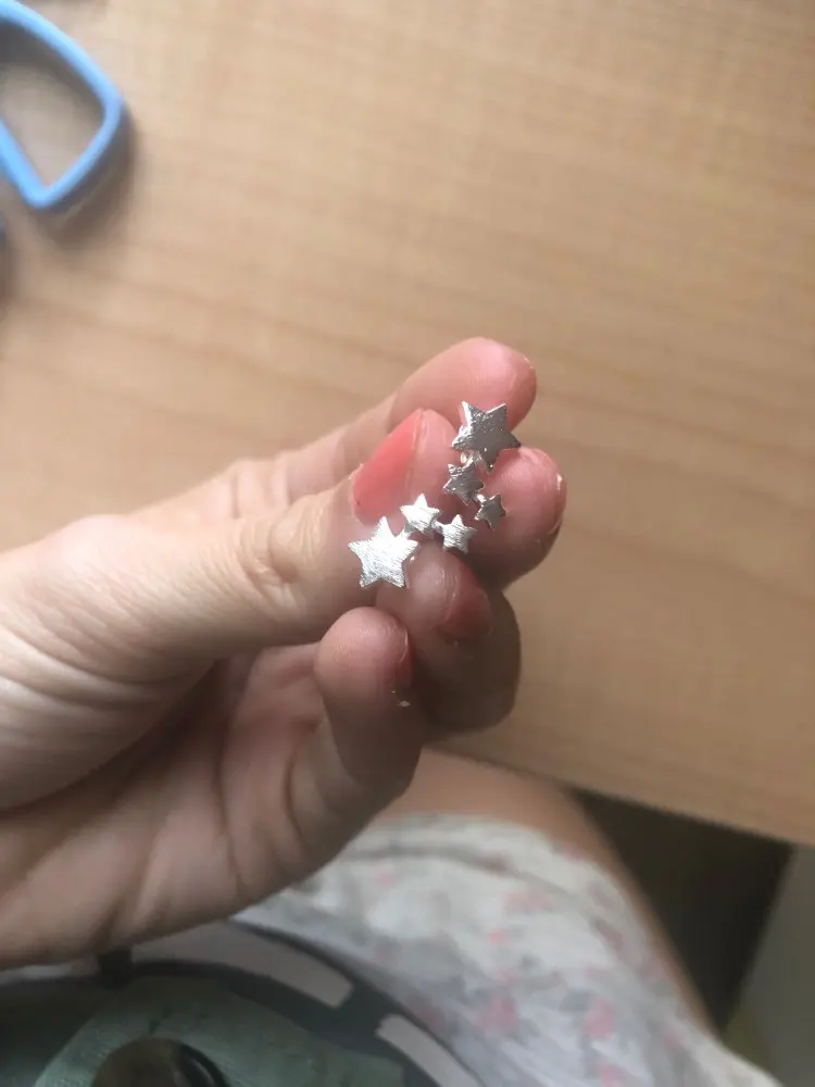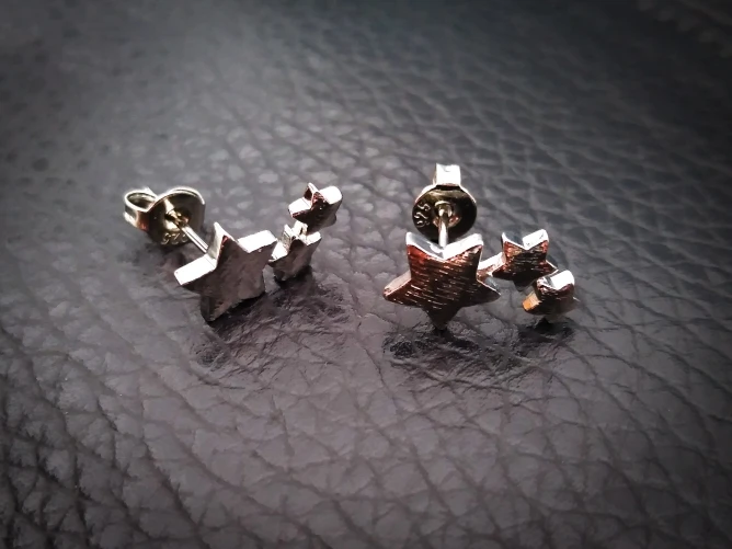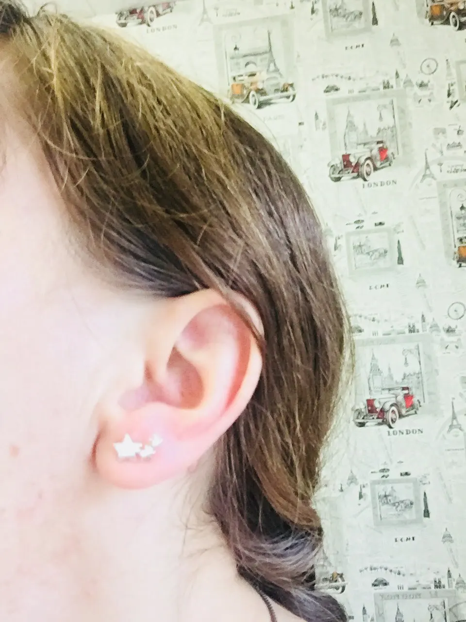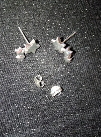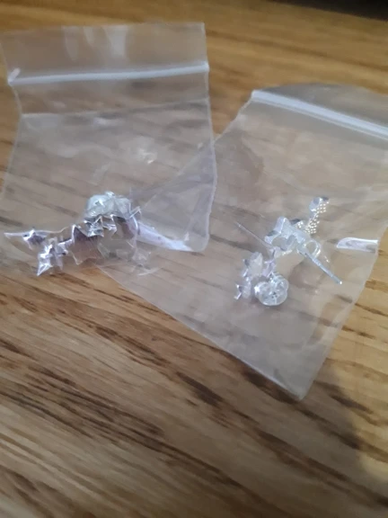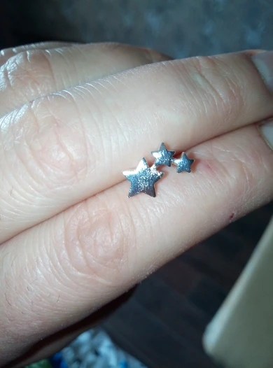 Серьги такие же, как на изображении, я спрашивал о звездах, они немного меньше, чем могут выглядеть на картинке, все равно изящные, они не выглядят плохо. Доставка была быстрой, прибыла через две недели, в Испанию.