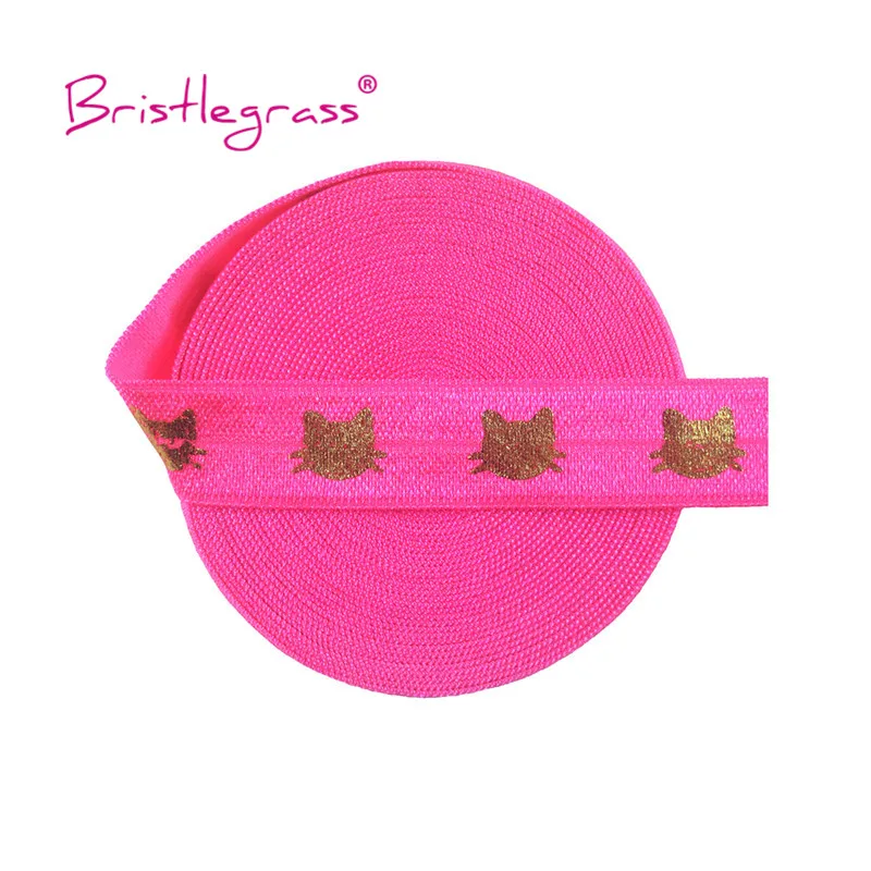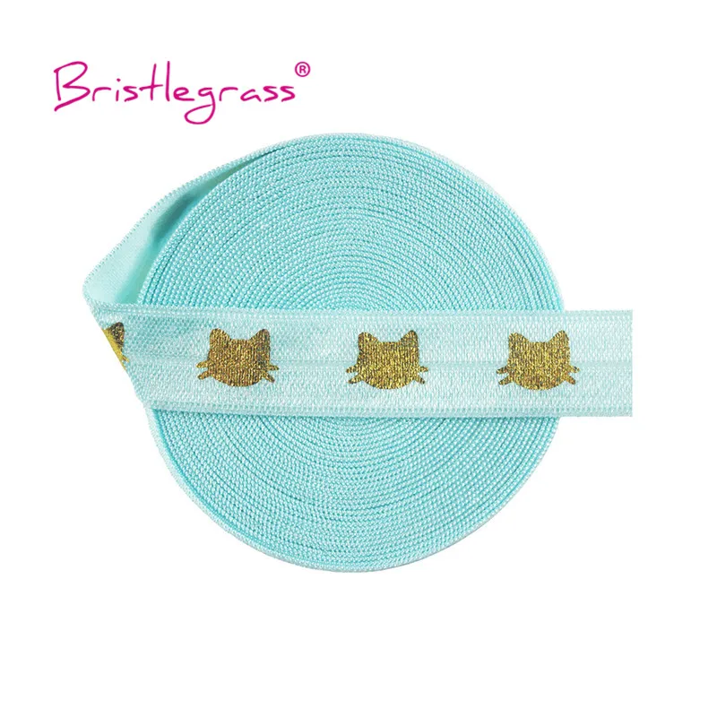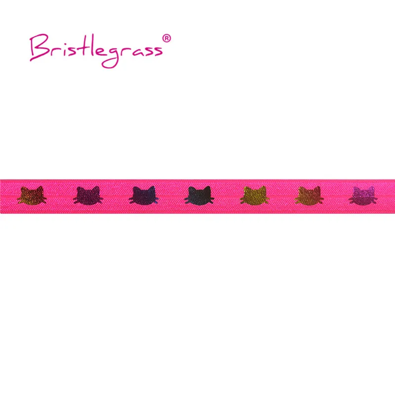 Блестящая трава 5 ярдов 5/8 "15 мм Радужная Золотая кошка фольга Принт раскладной эластичный враг спандекс атласная лента повязка для волос платье с повязкой Шитье