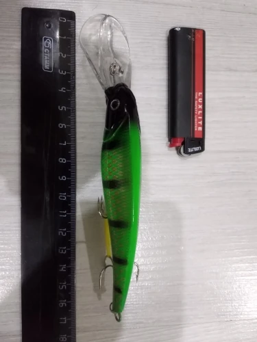 Композитор. В Вологодскую область пришло за 4 недели, на почту РФ. Воблер выглядит качественно окрашенным, крючки острые. Лопатка заглубления в 4,5 см, возможно, работает на глубине до 5 м. Внутри гремит шарик. Большой по размеру 16,5 см, для троллинга хорошо подойдёт. Цена выгодная. Петли проклеивал.