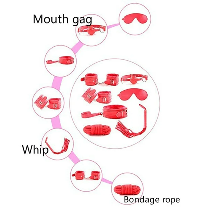 7 шт.компл. пушистый ошейник пушистая кровать бондаж набор снаряжения мяч кляп манжета кнут сексуальные товары 2019 секс-игрушки для влюбленных