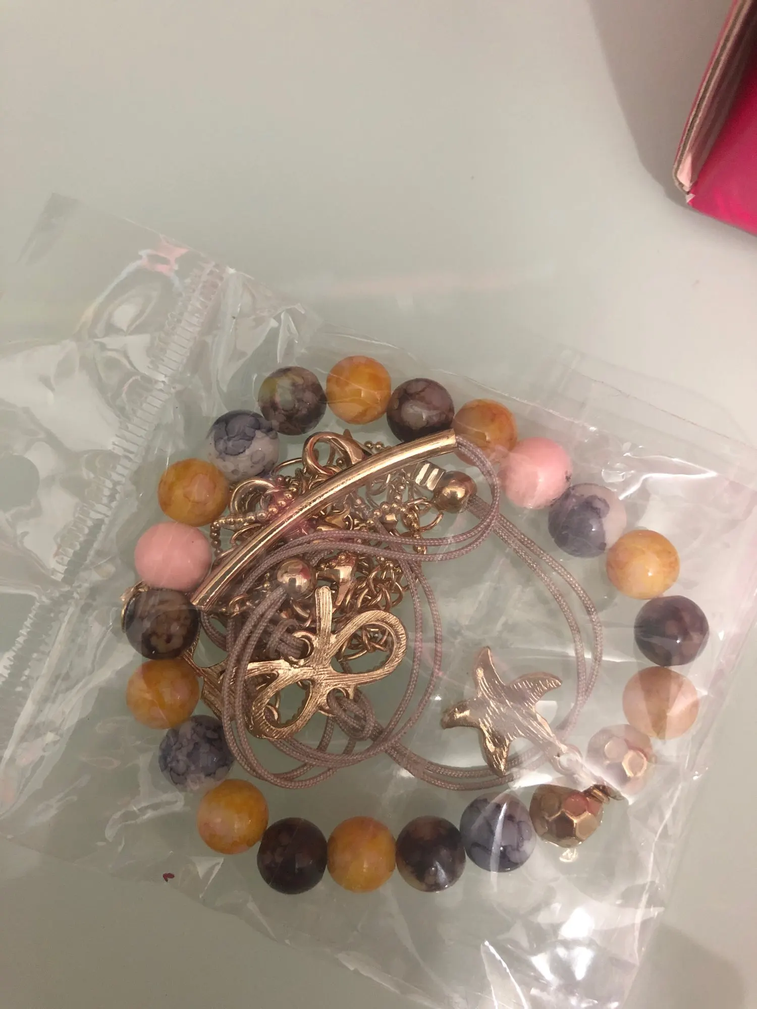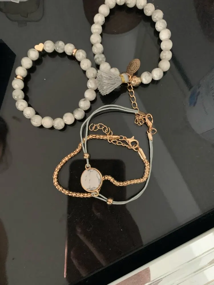 Bardzo fajny zestaw bransoletek, ślicznie dobrane kolory. Super