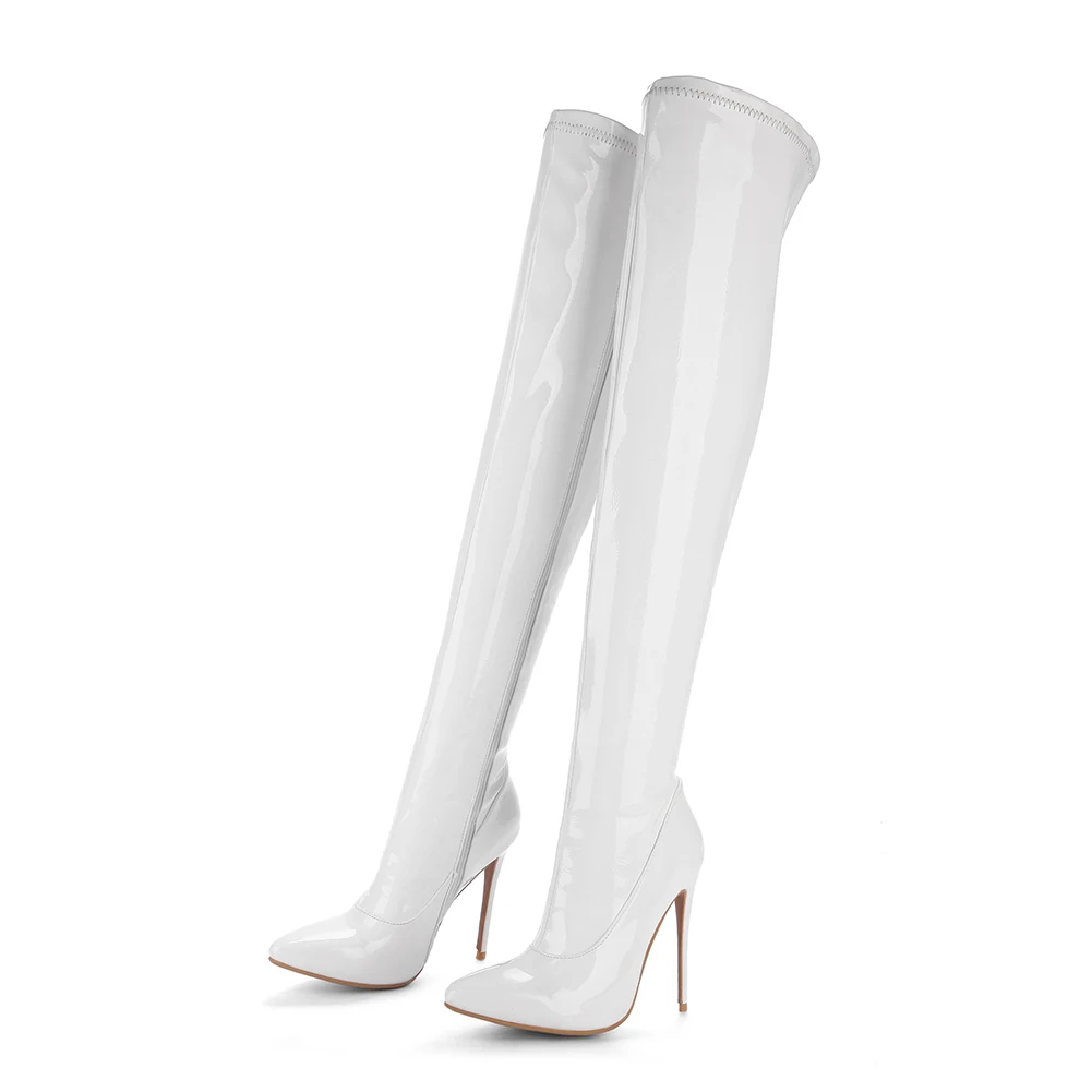 Сапоги женские зимние до колена с острым носком, на тонком высоком каблуке, 2020, размера плюс, 48