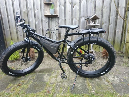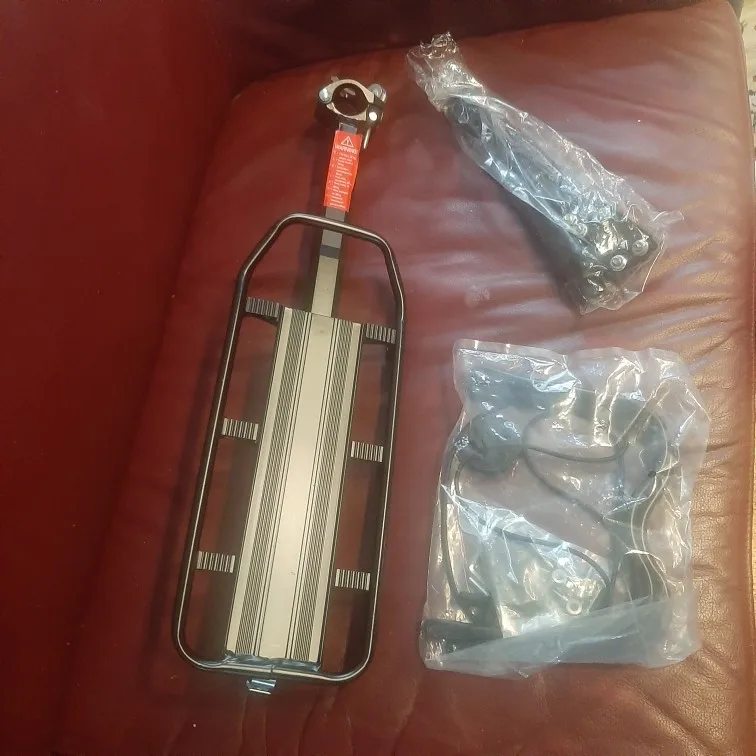Багажник хороший. Все болты и гайки в комплекте, а большая часть уже сразу наживлена. Поставил на дешевый фэтбайк. При этом главное не зажать тросики идущие к переключения скоростей и тормозов. Крепления, позволяют это хорошо обойти. Советую.