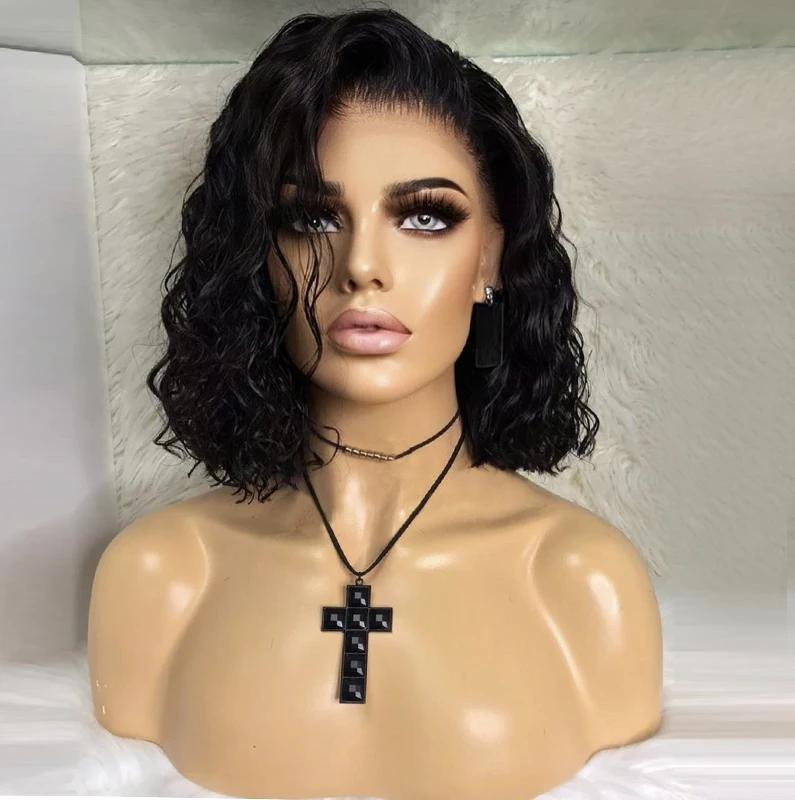 Парик Харизма из синтетических кружевов спереди, натуральные волосы, Короткие парики, черные волосы, Кудрявые Парики для женщин, боковые части, безклеевые, для косплея