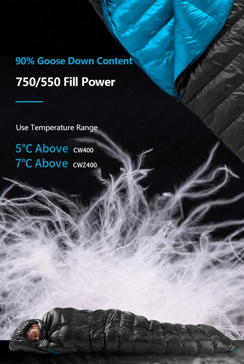 Зимний теплый спальный мешок Naturehike CW400, спальный мешок с белым гусиным пухом