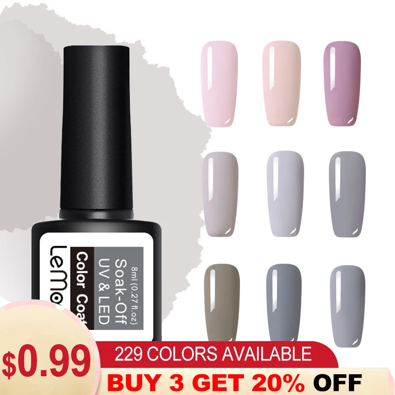 Гель-лак для ногтей LEMOOC, серия 8 мл, розовый, серый, 50 цветов, отмачиваемый Светодиодный УФ-Гель-лак, стойкий лак для дизайна ногтей