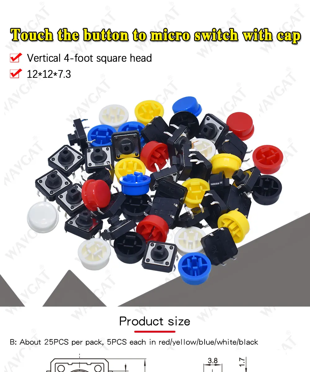 Ответ на вопрос "насколько точным является описание товара": в описании много лишних слов. Я бы написал: набор больших тактовых кнопок 12x12 мм с разноцветными колпачками.