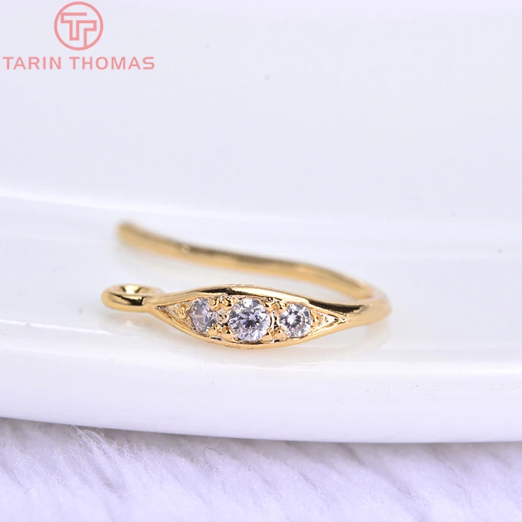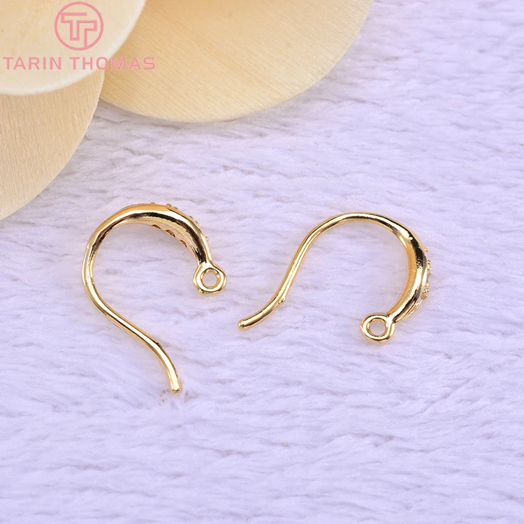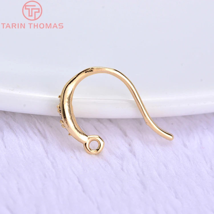 (2144)6 шт. 13x13 мм латунные серьги с цирконом 24 карата золотого цвета, крючки высокого качества, Ювелирная фурнитура сделай сам