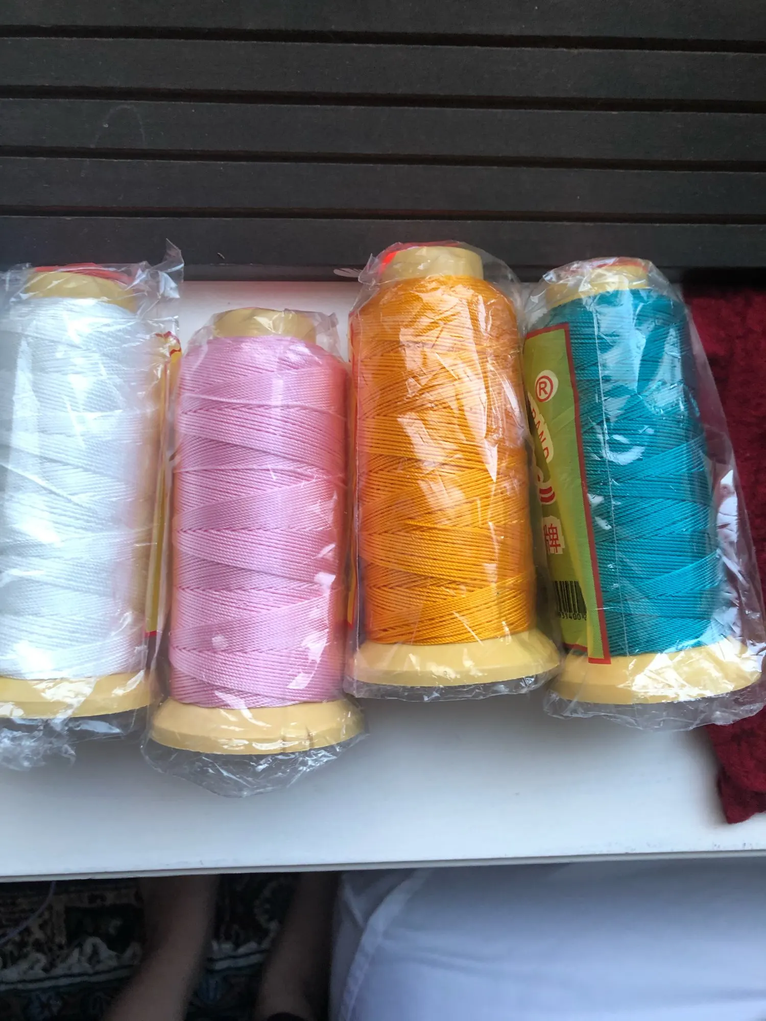Нить выглядит толстой и прочной, цвет яркий. Я получил его для изготовления malas. Я думал, что это будет нитка с лезвием для войны, но этикетка отличается. Доставка в Канаду занимает менее 3 недель.