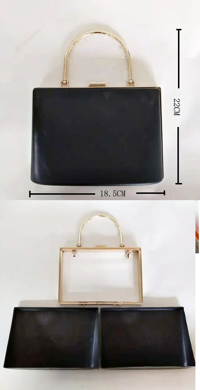 Новый узор настоящий рот золотая ручка рот Золотая рамка коробки с черным корпусом увеличенный Золотой металлический бокс клатчи Рамка кошелька