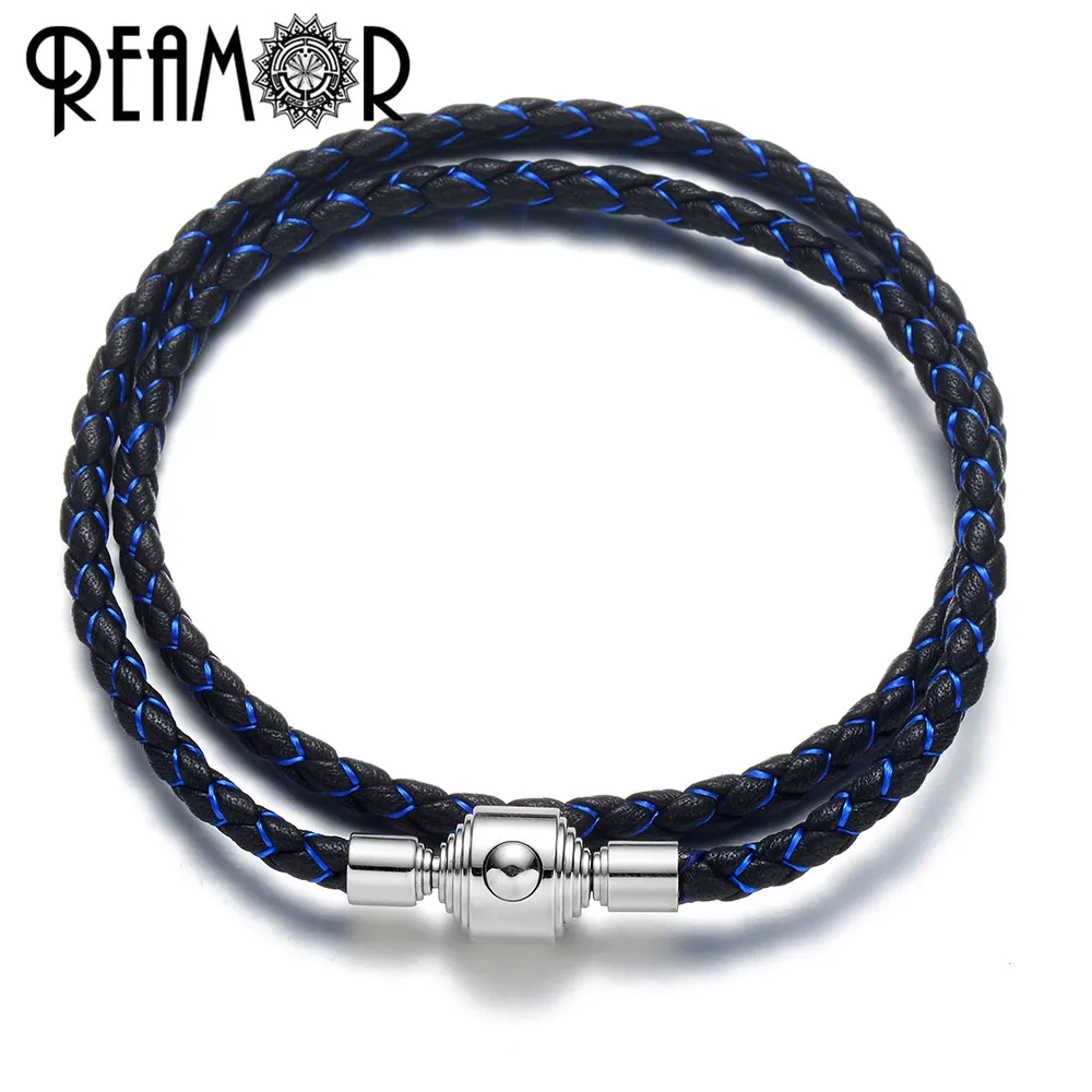 Женский браслет REAMOR, светло-голубой браслет из натуральной кожи,...