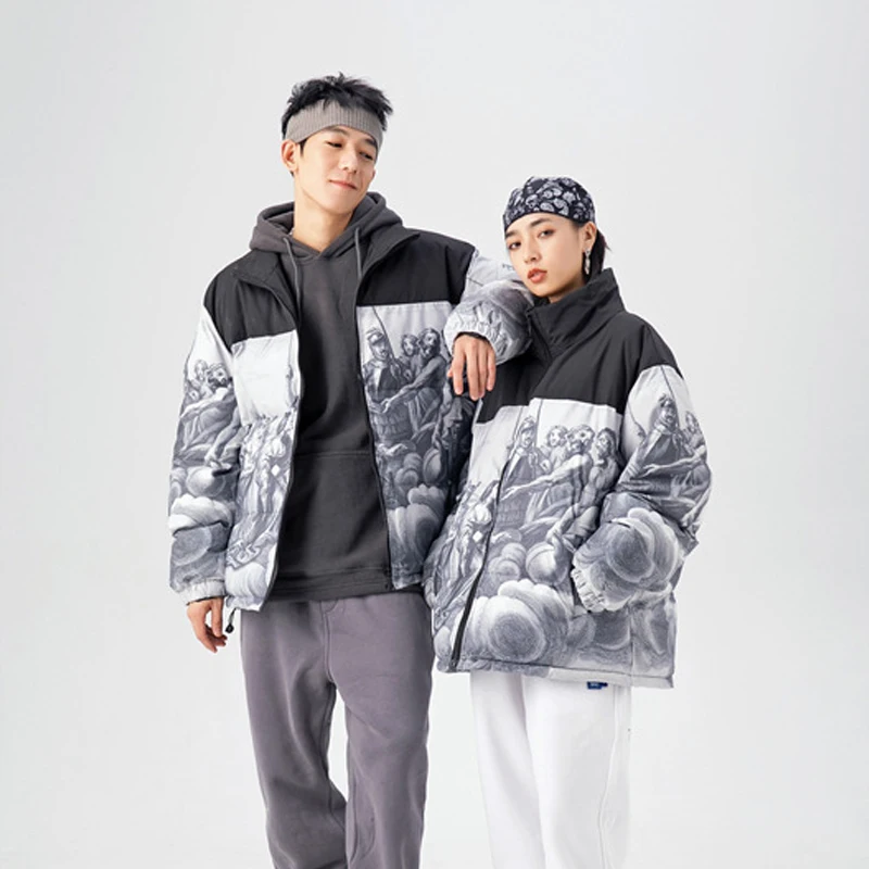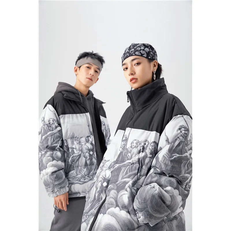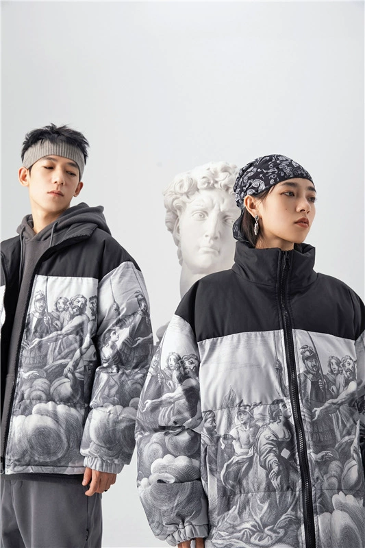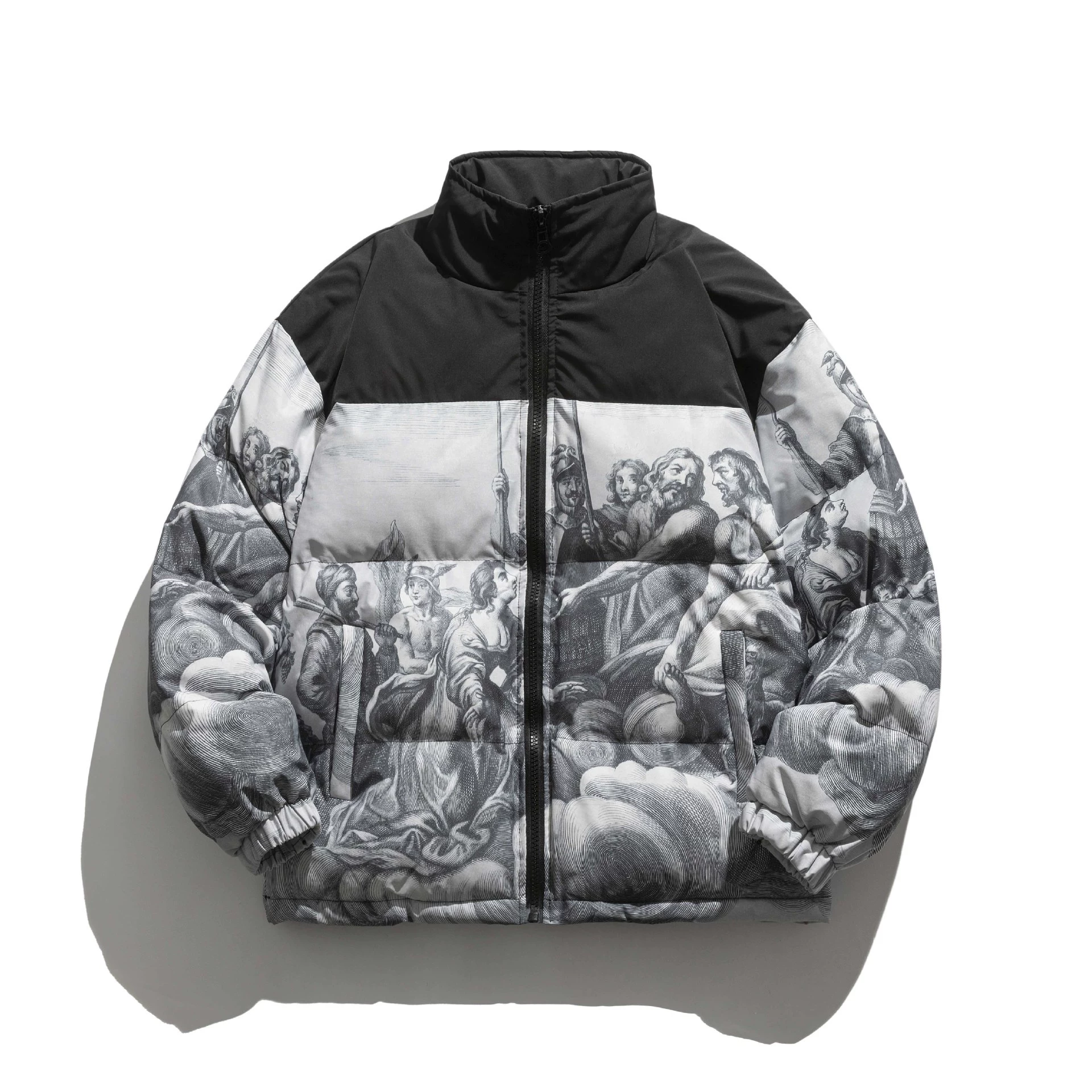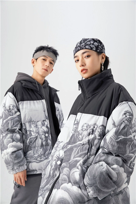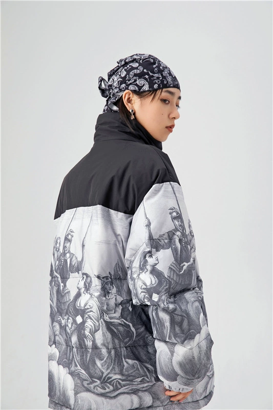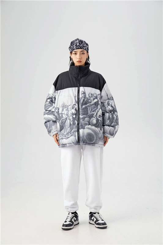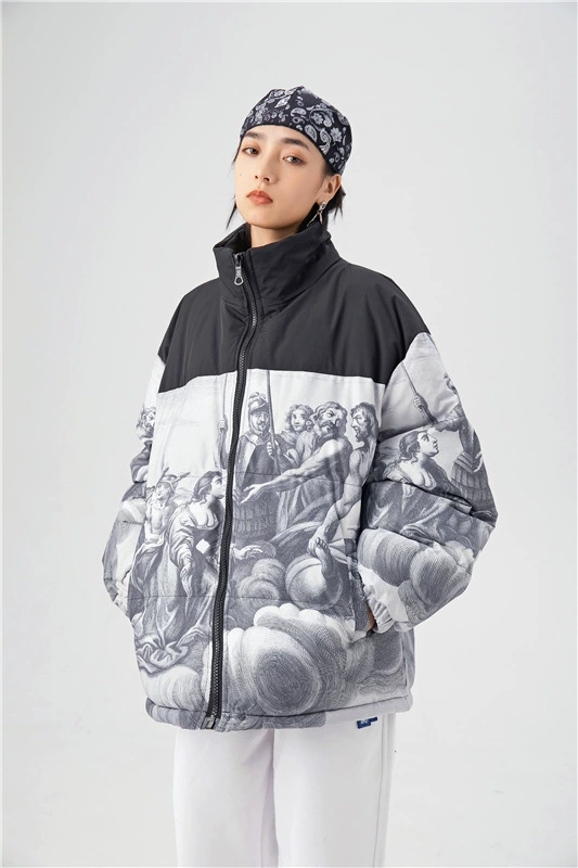Винтажный портретный принт, зимняя женская уличная одежда, теплая верхняя одежда большого размера с воротником-стойкой, повседневные парки и пальто унисекс