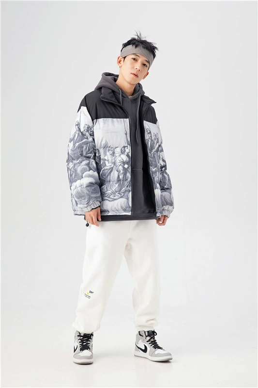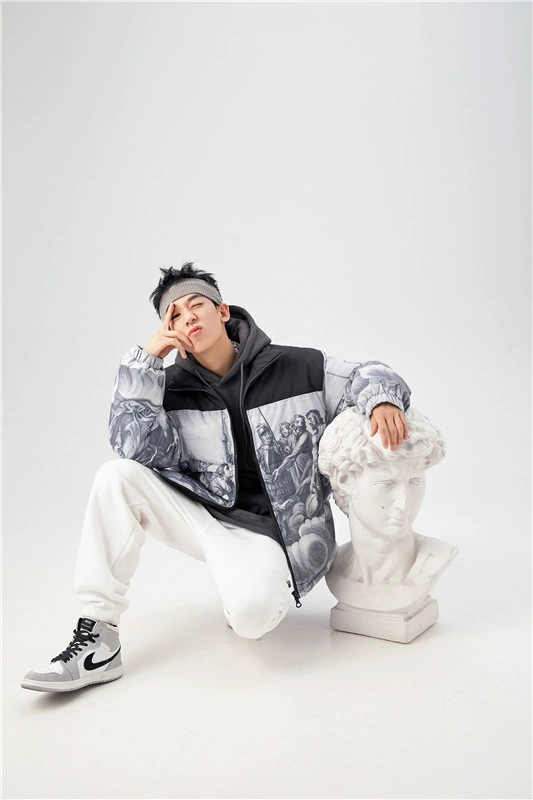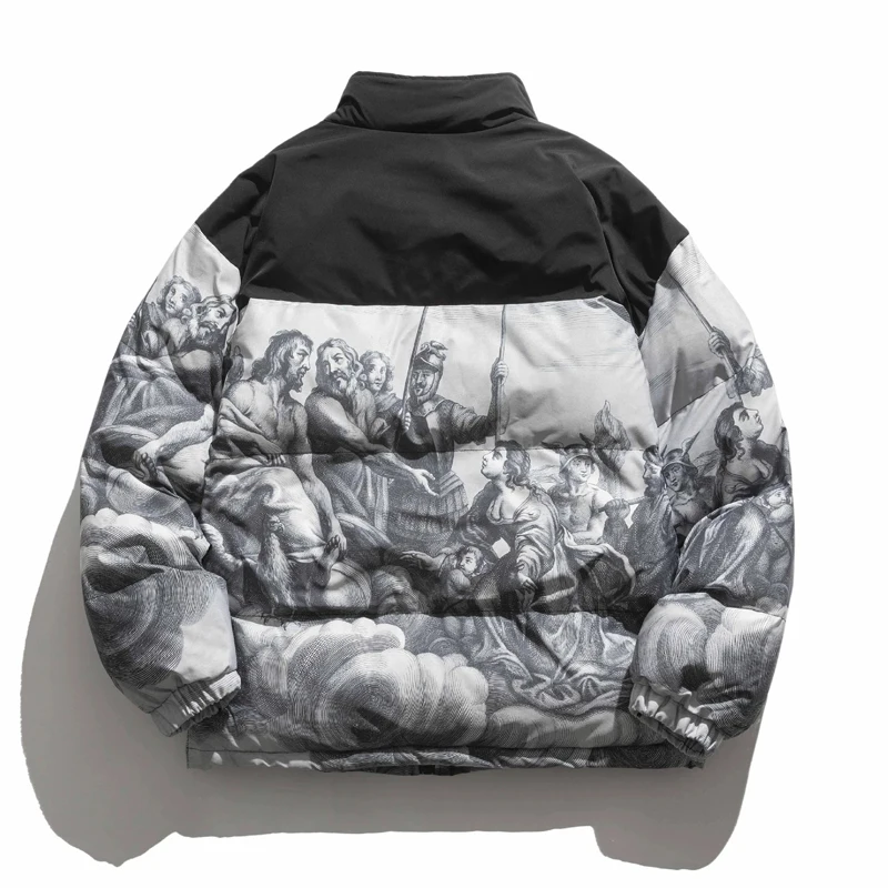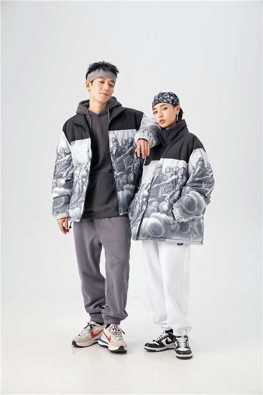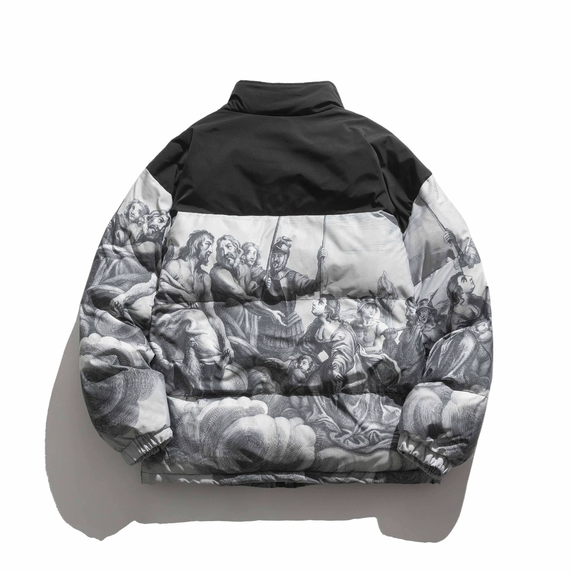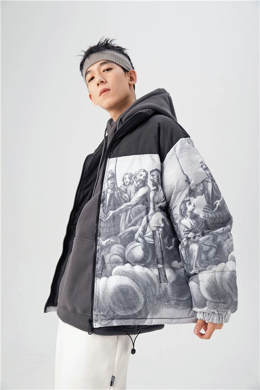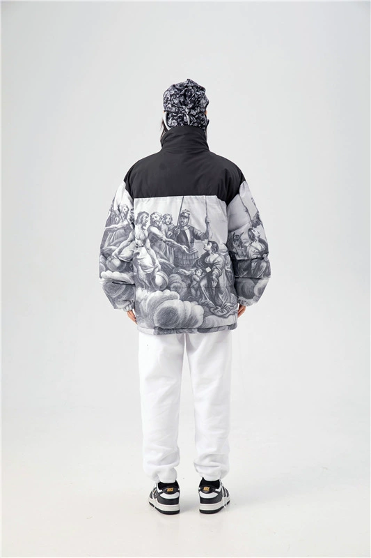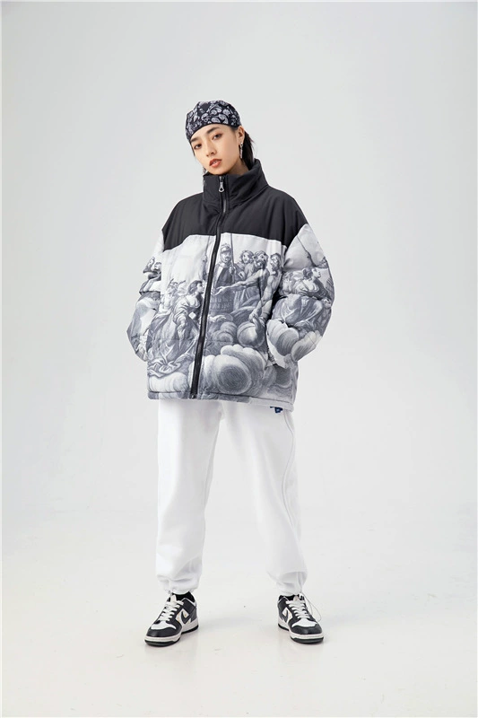 Винтажный портретный принт, зимняя женская уличная одежда, теплая верхняя одежда большого размера с воротником-стойкой, повседневные парки и пальто унисекс