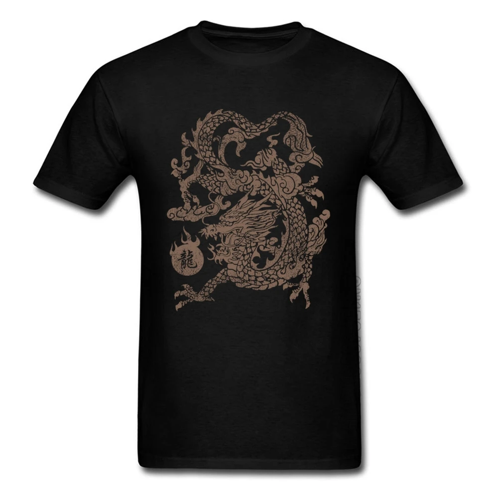 Классическая культура футболки для взрослых человек Китайский дракон едят солнце шаблон Графический футболки модные футболки мужские летние крутые